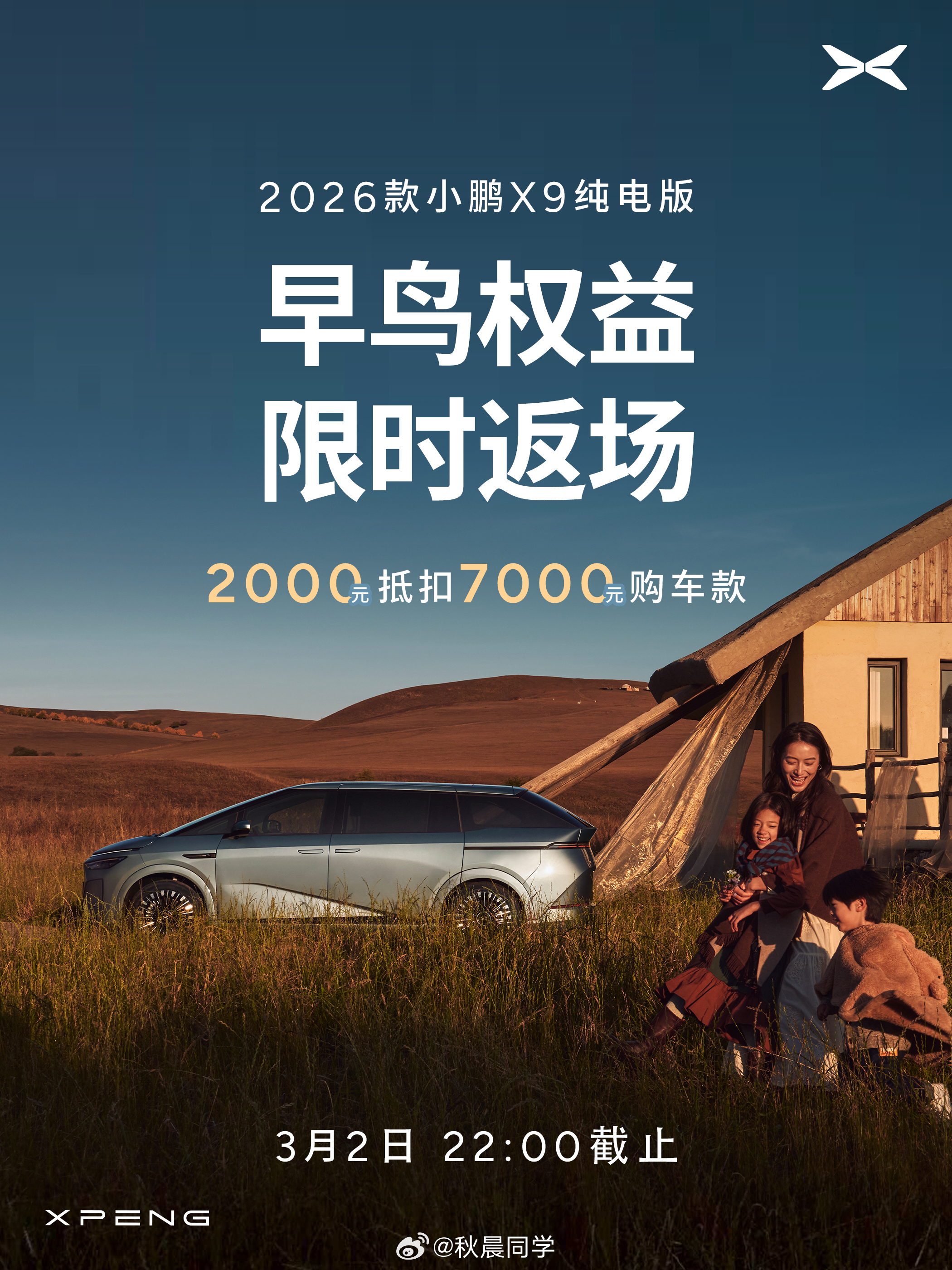 对了,新款小鹏X9纯电版有2000元抵扣7000元的优惠,具体看图2。新款小鹏x9纯电版上市30.98万起