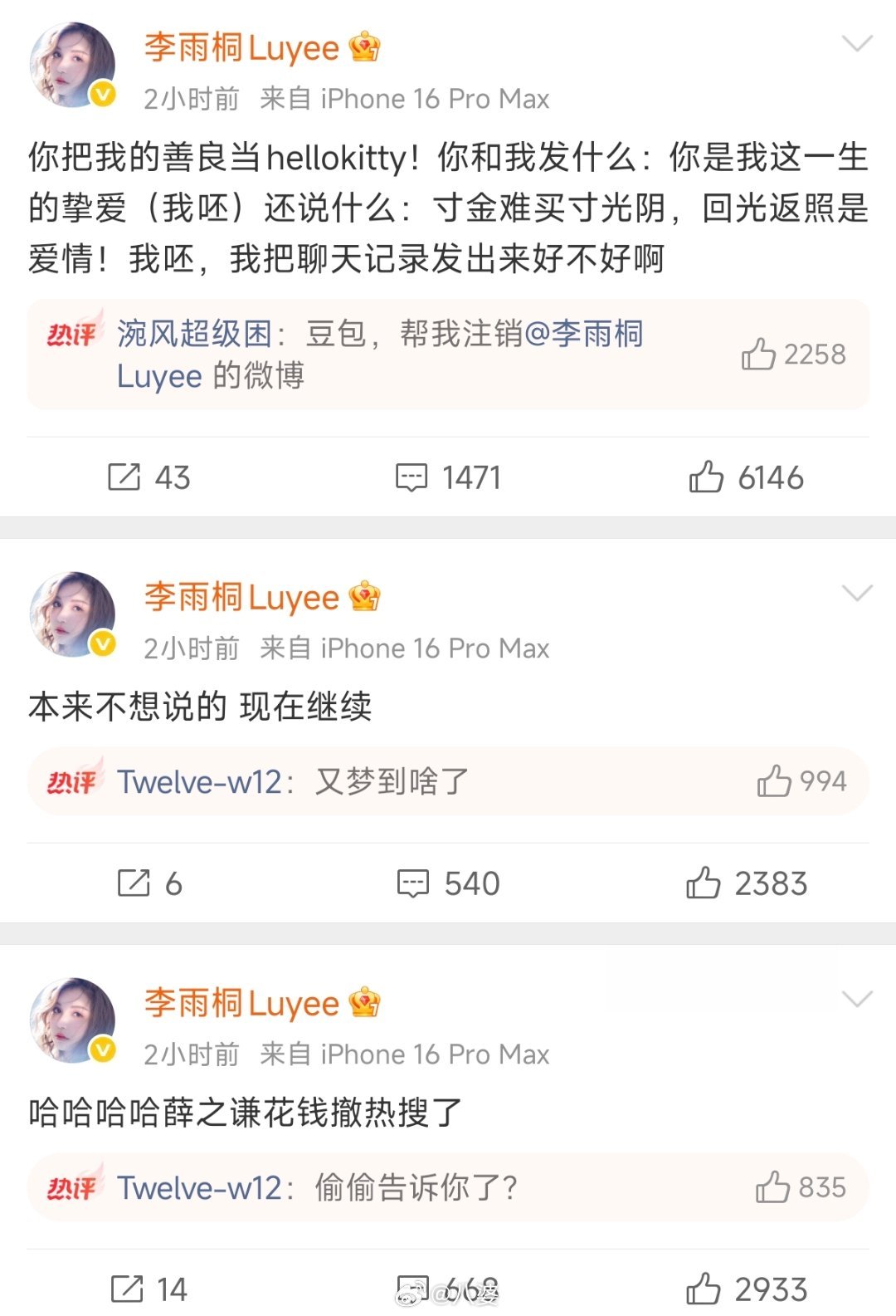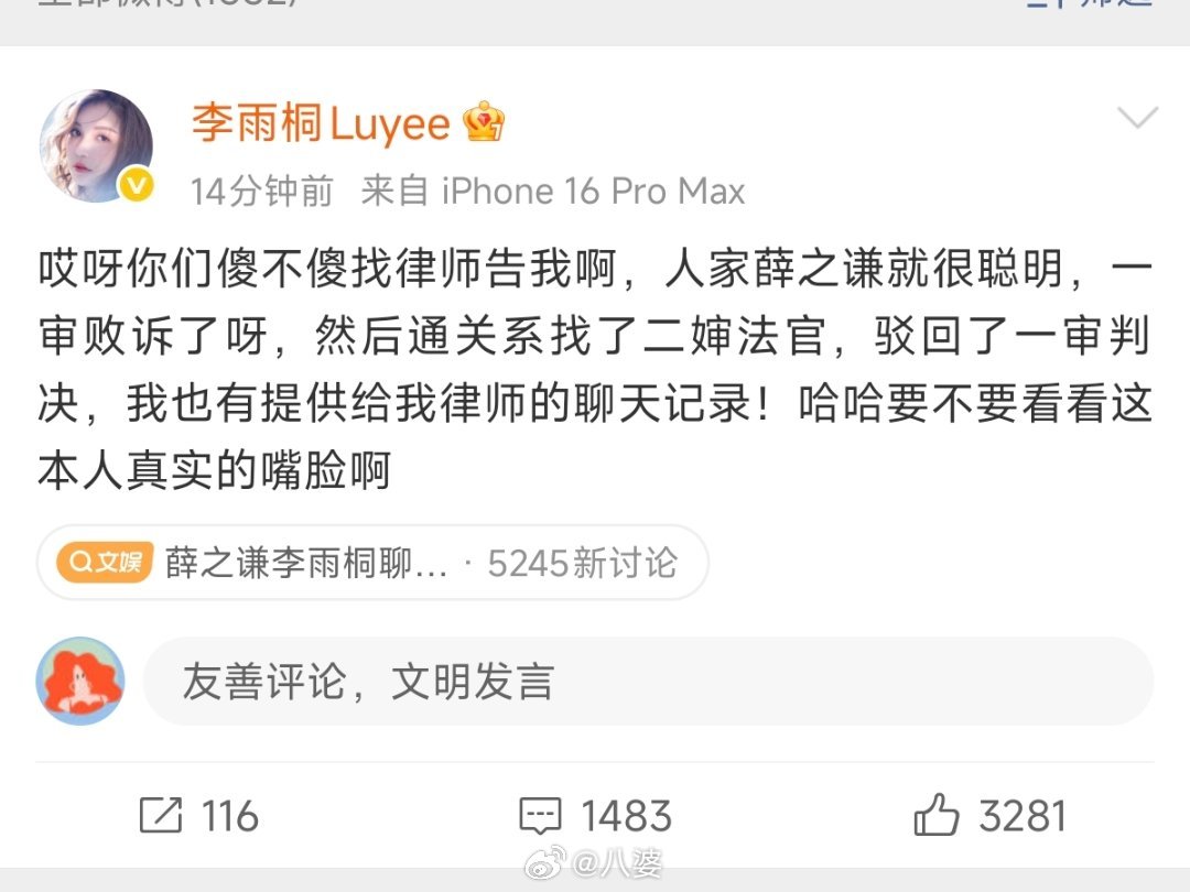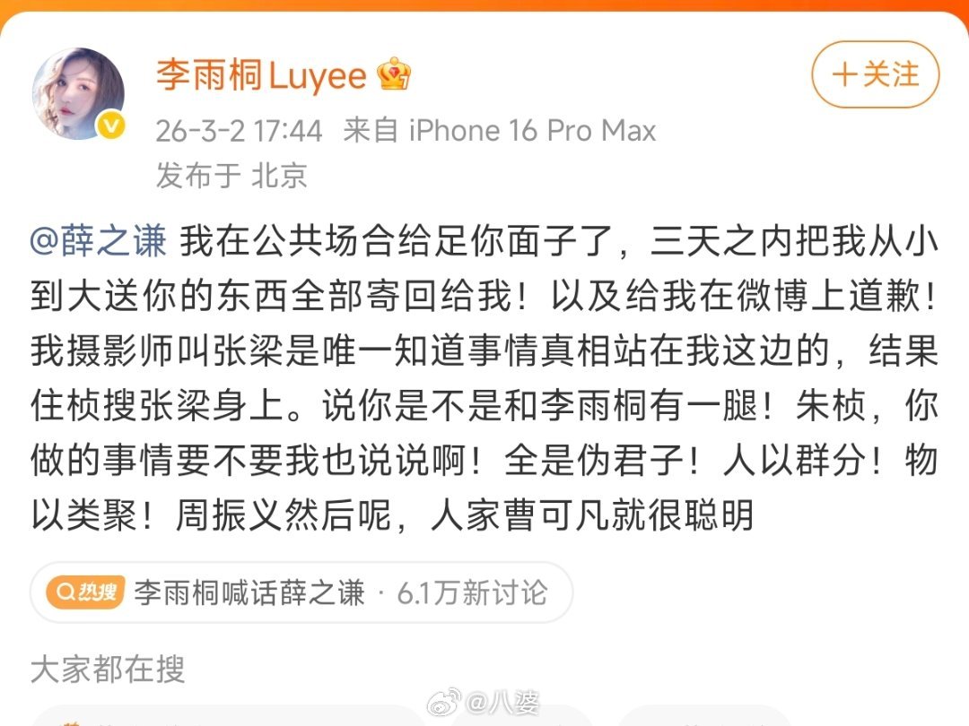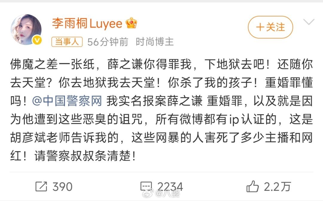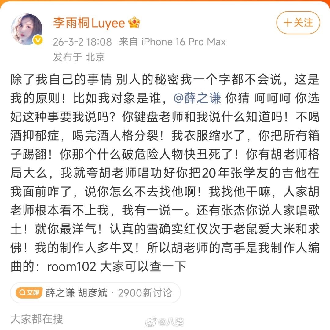 李雨桐实名报案薛之谦重婚罪从2012年到今天,快十四年了。这十四年里,李雨桐经历了太多,从满怀期待到彻底失望,从默默承受到站出来发声。有人说她反复无常,有人说她没有证据,但只有李雨桐自己知道,每一次发声,都是在和过去的自己和解。希望时间能给她一个答案吧 李雨桐 胡彦斌告诉我的