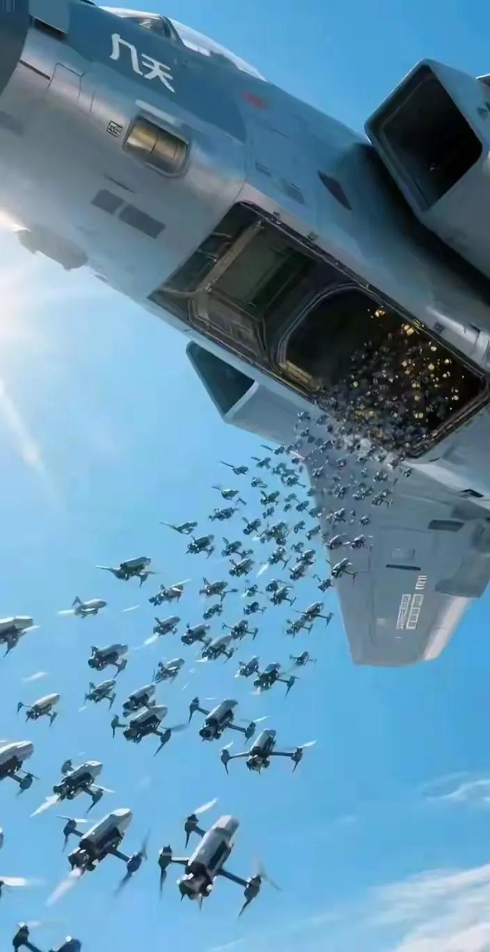 美:阿中 你有必要搞这么夸张吗 中:我咋的了 美:你解释解释 九天无人机是干嘛的 中:一款无人机 值得你大惊小怪的吗 美:无人机有必要搞这么大吗 中:咋没必要啊 我觉得也没多大啊 相反我觉得还有点小 美:你管最大起飞重量16吨 有效载荷6吨的无人机叫没多大 这是无人机啊大哥 不是有人机 中:是没有多大啊 美:你搞这么大的无人机 是准备要拉什么吗 中:瞧你这话说的 不拉东西 我搞这么大干嘛 美:一个无人机能拉什么 又不是运输机 中:无人机装无人机啊 美:啥玩意 无人机拉无人机? 中:对啊 美:6吨能装多少无人机啊 中:这我们也没数过啊 稍微大一点的几百架 小一点的几千架不成问题 美:啥玩意 也就是最少可以装几百架 中:差不多吧 美:你搞这么多无人机干嘛 之前听说你家模块化 还有蜂巢是什么 中:这就是一个比喻 主要是用来农用和商用 打打农药 商业表演什么的 美:真的只是这样吗 中:那不然呢 美:吓我一跳 我还以为是蝗虫过境 寸草不生了