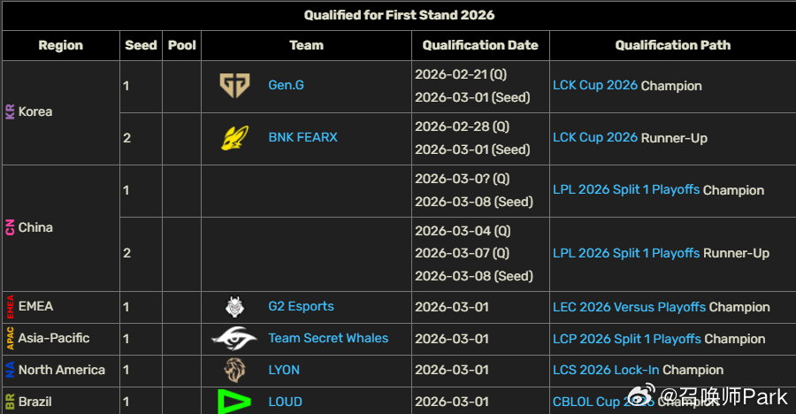 随着WBG晋级败者组半决赛,TES止步六强,25先锋赛队伍全军覆没,他们分别是TES、HLE、CFO、KC、TL,这还是2026全球先锋赛扩充三支队伍的情况下目前GEN、BFX、TSW、Loud、G2、LYON已经锁定2026全球先锋赛席位,加上LPL的两支队伍就齐活啦!LPL这边BLG和JDG争第七张全球先锋赛门票,败者和AL、WBG、IG争最后一张。