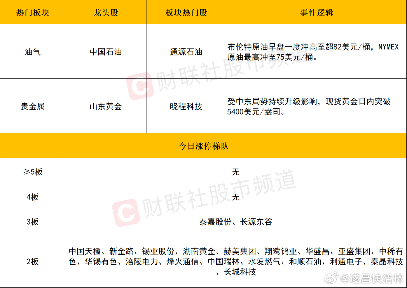 贵金属同样走强,晓程科技20cm涨停,西部黄金、四川黄金、湖南黄金、招金黄金、赤峰黄金、中金黄金等涨停。消息面上,受中东局势持续升级影响,现货黄金日内突破5400美元/盎司。