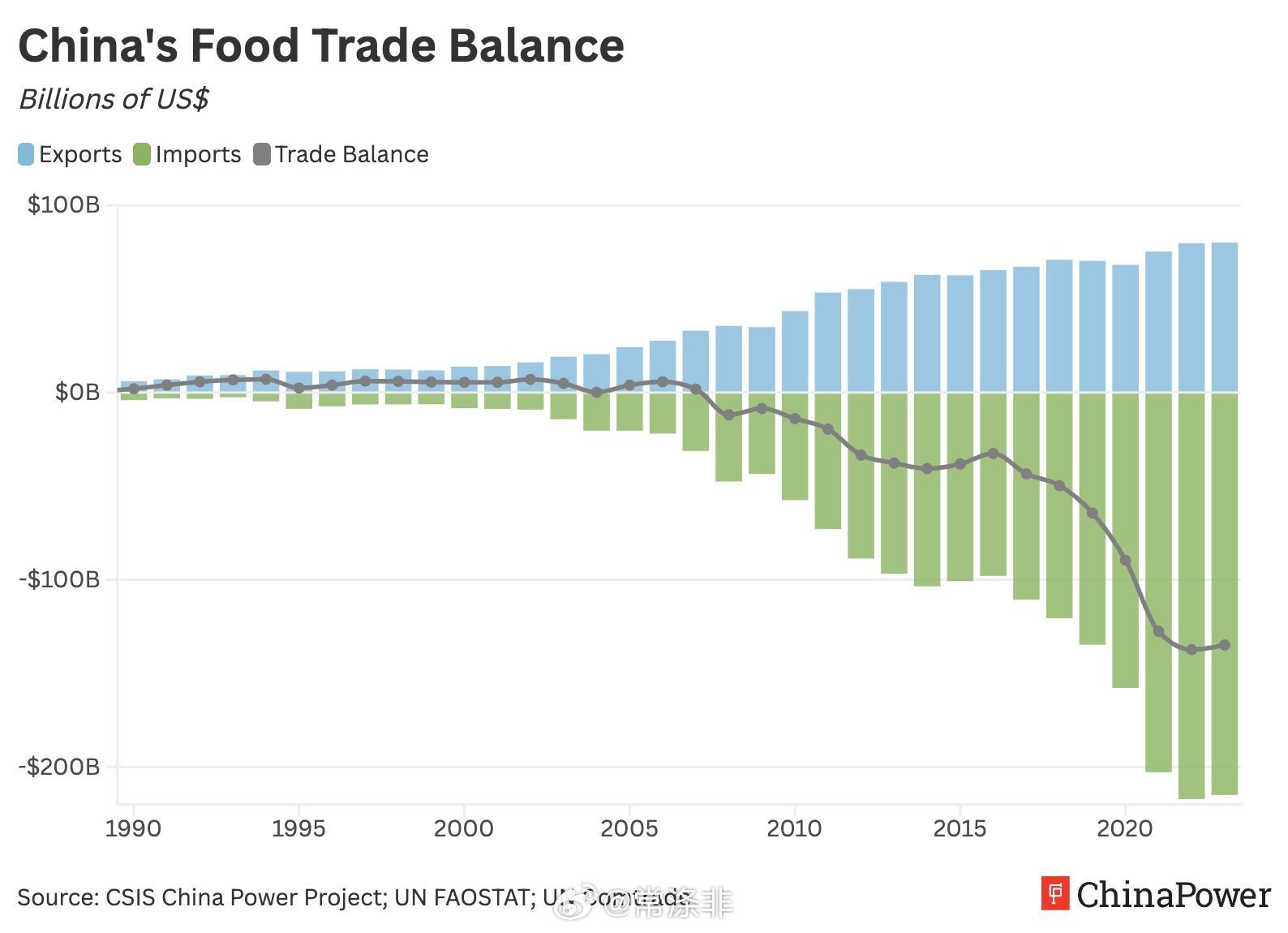 作为全球最大的食品进口国,中国的粮食自给率从2000年的93.6%下降到2020年的65.8%。
