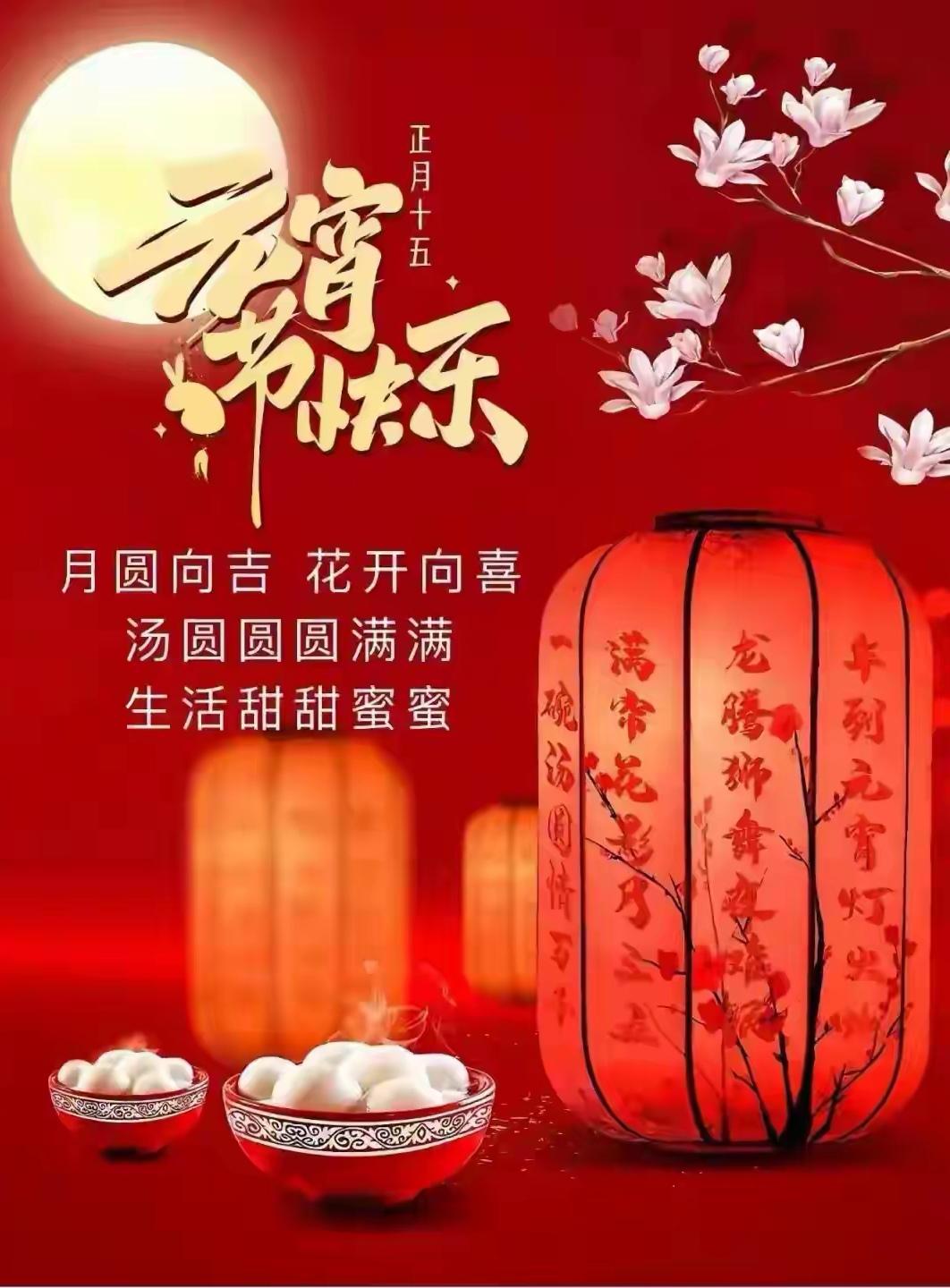 正月十五圓宵節, 闔家歡聚樂團圓, 大紅燈籠映紅天, 鍋裏湯圓香又甜, 馬年如意隨心願, 祝願生活喜連連。 圓宵節快樂! 🌹🌹🌹