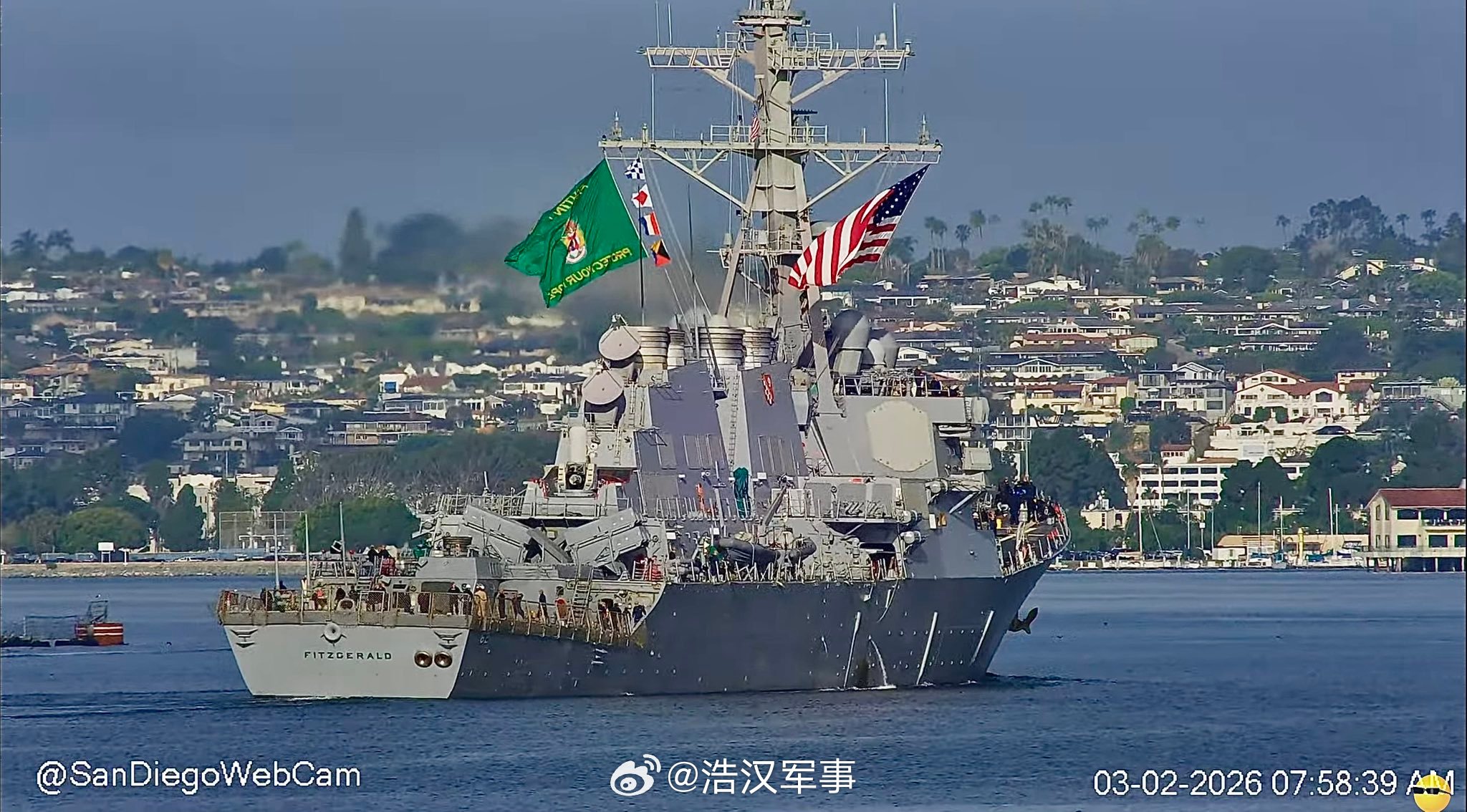 每天认识一件兵器全球武器装备盘点烽火问鼎计划 2026 年 3 月 2 日,美国海军阿利·伯克级导弹驱逐舰“菲茨杰拉德”号(DDG 62)离开圣地亚哥。