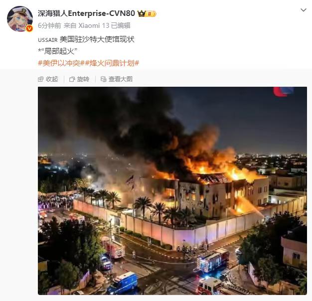 美国驻沙特大使馆被炸了,被伊朗2台无人机击中