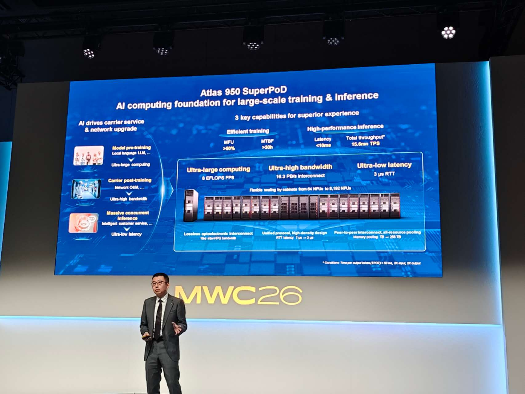 【华为海外首发新一代算力底座:为世界提供新选择】华为算力海外首次亮相 当地时间3月2日,在世界移动通信大会(MWC26)期间,华为计算产品线总裁张熙伟首次在海外发布最新的Atlas950 SuperPoD,TaiShan 950 SuperPoD等多个型号超节点产品及解决方案。