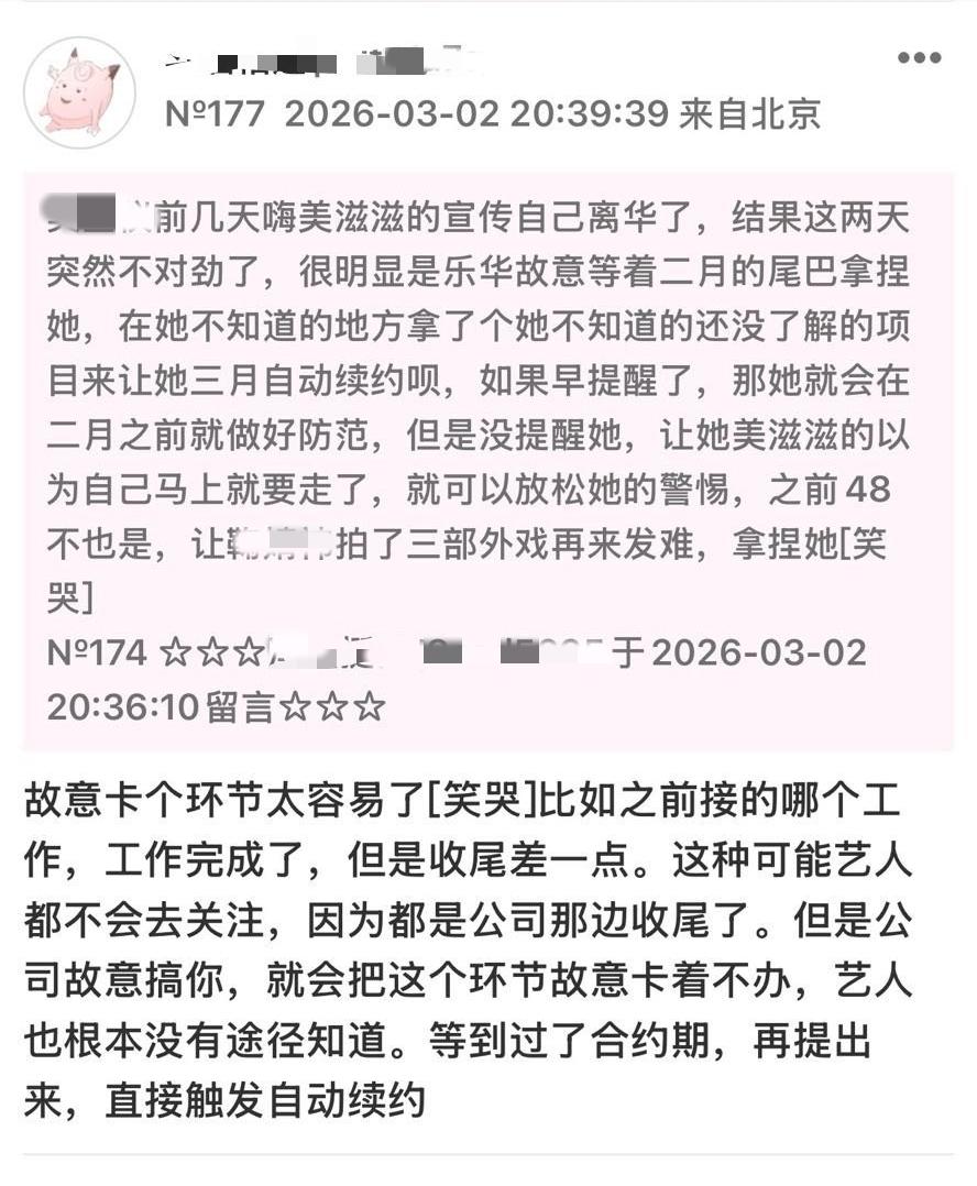 头一回听说了自动续约这种条款,不是到期就不续约了那么简单。刷到的说法是解约前至少一年没有任何工作 ,有也要在一年内结清(要经纪公司认可),不然就自动续约下去了。[震惊] 还好的是,乐华披露的艺人合约期里博已经没有“自动续约”这一条款了。他已续约过一次,估计是重新谈了条件。 但是,从这两年他暂停接拍新戏减少工作来看,明显也是在防着被公司拿捏。太不容易了!幸好他的实力够强,有自己发起的《探索新境》,有自己的活动赛车,还有大量的商务可以维持过渡期。