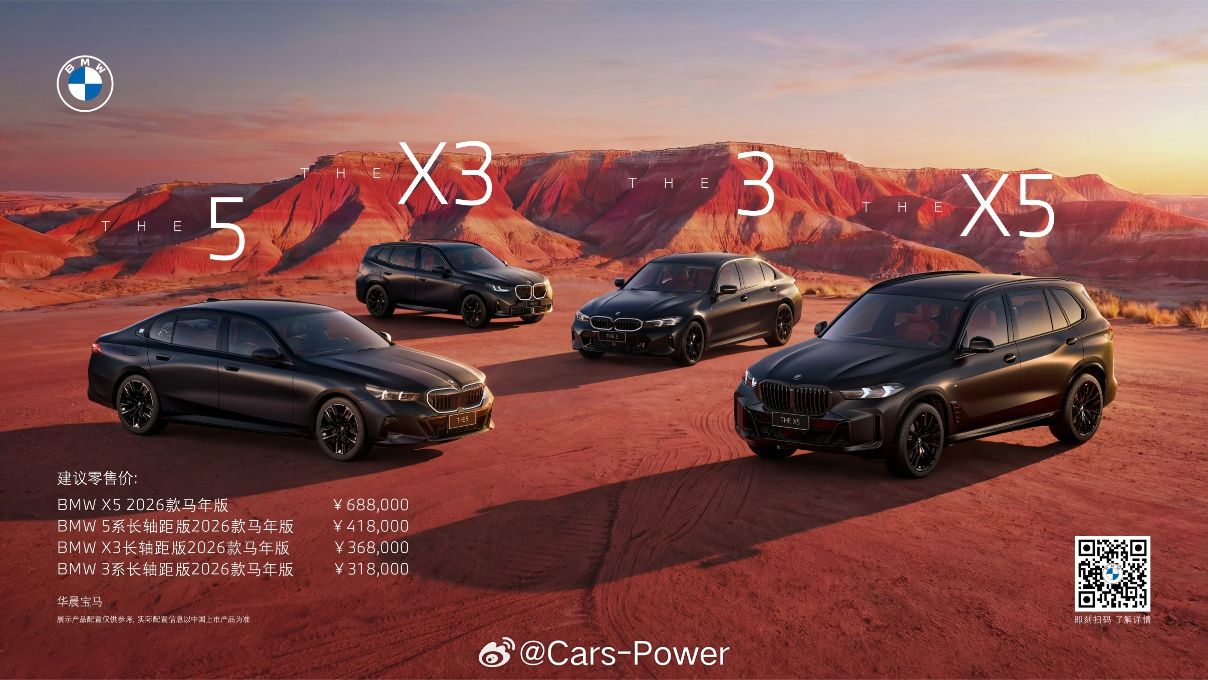宝马正式发布四款2026马年特别版车型💰售价如下:🐎3系马年版:318,000元🐎5系马年版:418,000元🐎X3马年版:368,000元🐎X5马年版:688,000元🖤首次引进磨砂宝石青车漆❤️专属刺绣标识启迪于敦煌骏马图腾💛专属迎宾踏板
