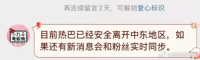 热巴对接回应了,热巴已经安全离开中东地区!如果没有那边的行程很难理解为什么不直飞,好像说有工作人员直飞了 迪丽热巴 滞留迪拜