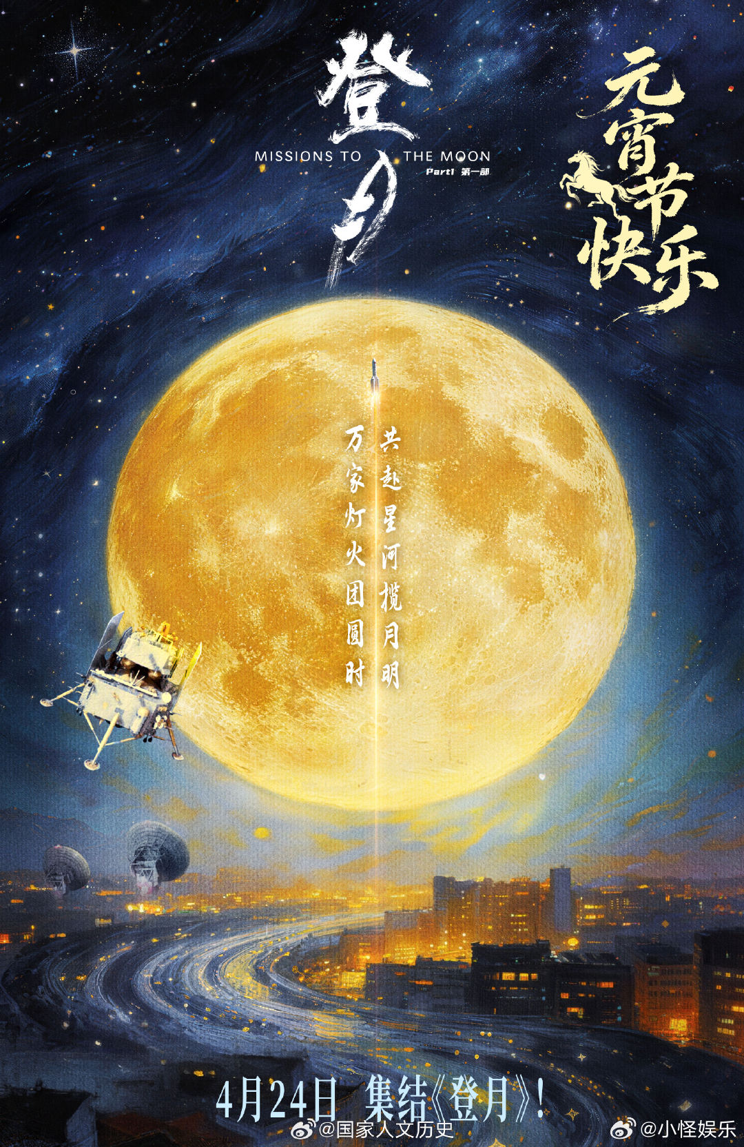 电影登月定档电影登月第一部定档《元宵节》元宵赏灯时,《登月》(第一部)4月24日公映,聚焦嫦娥六号月背采样,读懂中国探月底气。