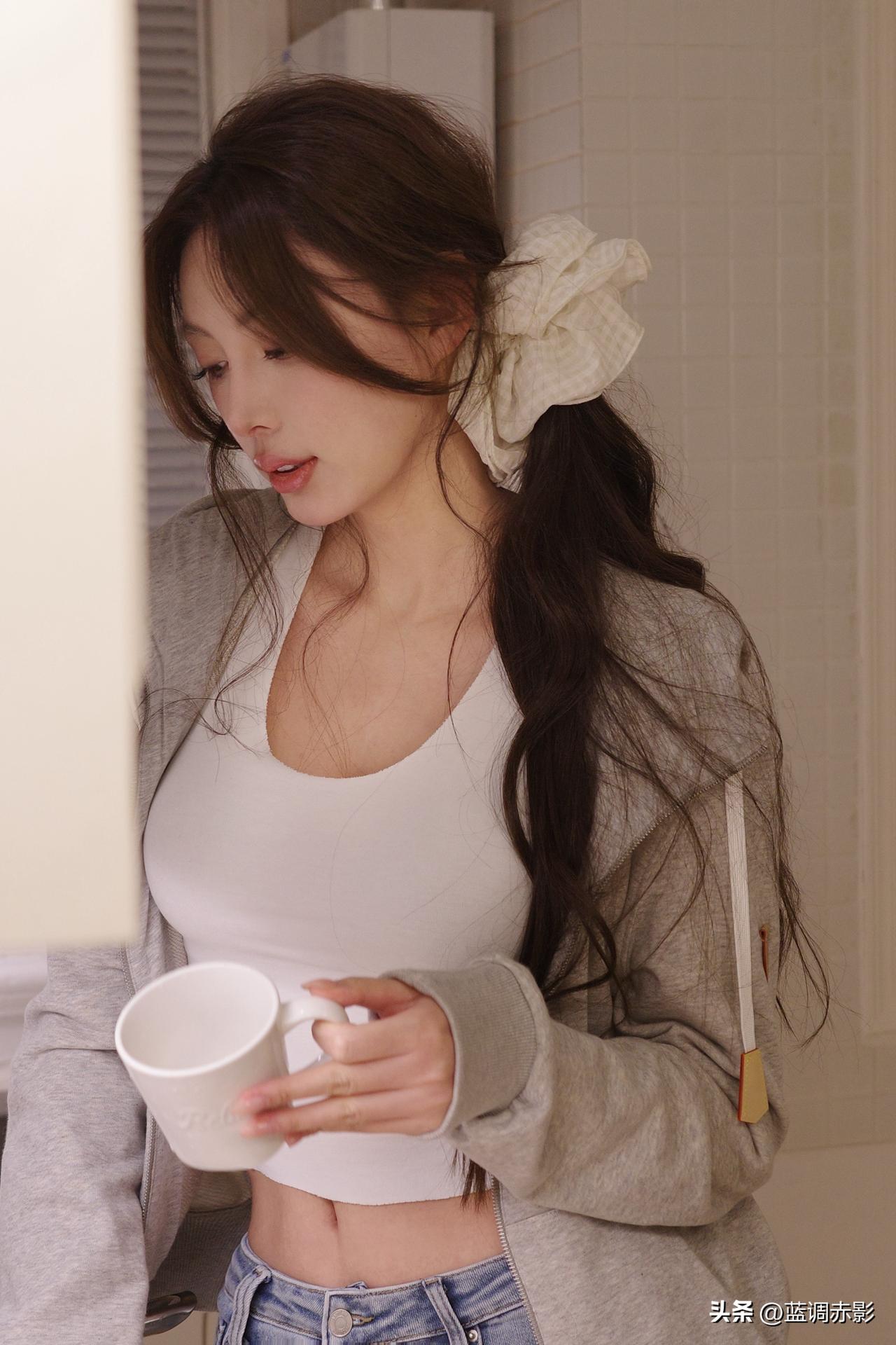 元气少女,手捧咖啡,元气满满的一天开始啦!😊☕️💕