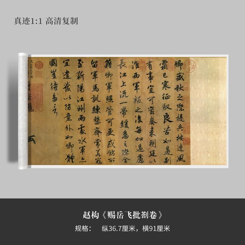赐死岳飞前,赵构写给他一道圣旨,字迹绝美却让人不寒而栗! 在岳飞被赐死之前,宋高宗赵构曾亲笔写给岳飞一道圣旨,这道圣旨言辞看似恳切,满是对前线将士的关切,实则字里行间暗藏隐情,藏着帝王对武将的提防与政治考量,这便是现藏于台北故宫博物院的《赐岳飞批剳卷》。 创作于南宋绍兴年间,正值岳飞率军在前线抗金、战功赫赫之际,也是赵构对岳飞的猜忌逐渐加深的时期。赵构在文中特意提到“淮西军叛”一事,提醒岳飞要恪守忠君之道,不可拥兵自重、功高震主。 同时,他明确告诫岳飞,对金国采取守势即可,不必主动出兵征讨、招惹金国,这番话背后,是赵构急于求和、忌惮岳飞兵权过重的真实心思。可惜岳飞一心只想北伐中原,未能读懂背后的深层含义,最终也为自己的悲剧结局埋下了伏笔。 《赐岳飞批剳卷》的书法价值同样不容小觑。宋高宗赵构在书法上造诣极深,尤其精研晋人笔法,对王羲之《兰亭序》、褚遂良《圣教序》更是研究透彻,将晋唐书法的精髓融会贯通,形成了自身清丽洒脱、秀润飘逸的风格,在历代帝王书家中,水准堪称上乘,甚至远超不少专业书家。 此作用笔细腻精到,点画秀润潇洒、婀娜多姿,起笔藏露结合,每一笔都有章法可循,笔路清晰,书写流畅爽利,完全贴合《兰亭序》《圣教序》的笔法精髓,做到了形神兼备。 欹侧多变却不失稳重,通过笔画的伸缩挪让实现动态平衡,既保留了魏晋行书的灵动之气,又兼具自身的端庄格调。每一笔都经过精心排布,尽显赵构对笔法的掌控力。 全篇布局疏密有致,字距、行距错落自然,气脉贯通,没有因篇幅不长而显得单薄,反而尽显简约而不简单的艺术格调。 对于书法爱好者而言,《赐岳飞批剳卷》是极佳的临摹范本,它既保留了魏晋行书的核心笔法,又通俗易懂、易于上手,临摹此作,既能快速掌握晋人行书的提按转折、结字规律,又能熟悉《兰亭序》《圣教序》的笔法精髓,为后续深入学习魏晋书法打下坚实基础。 因真迹藏于台北故宫博物院,寻常书法爱好者难以近距离观摩,我们将此作进行了超高清1:1复制,精准还原原作的笔锋细节、墨色层次,便于大家临摹和欣赏,直取魏晋行书的精髓。 赵构行书《赐岳飞批剳卷》高清原大复制品毛笔书法艺术微喷