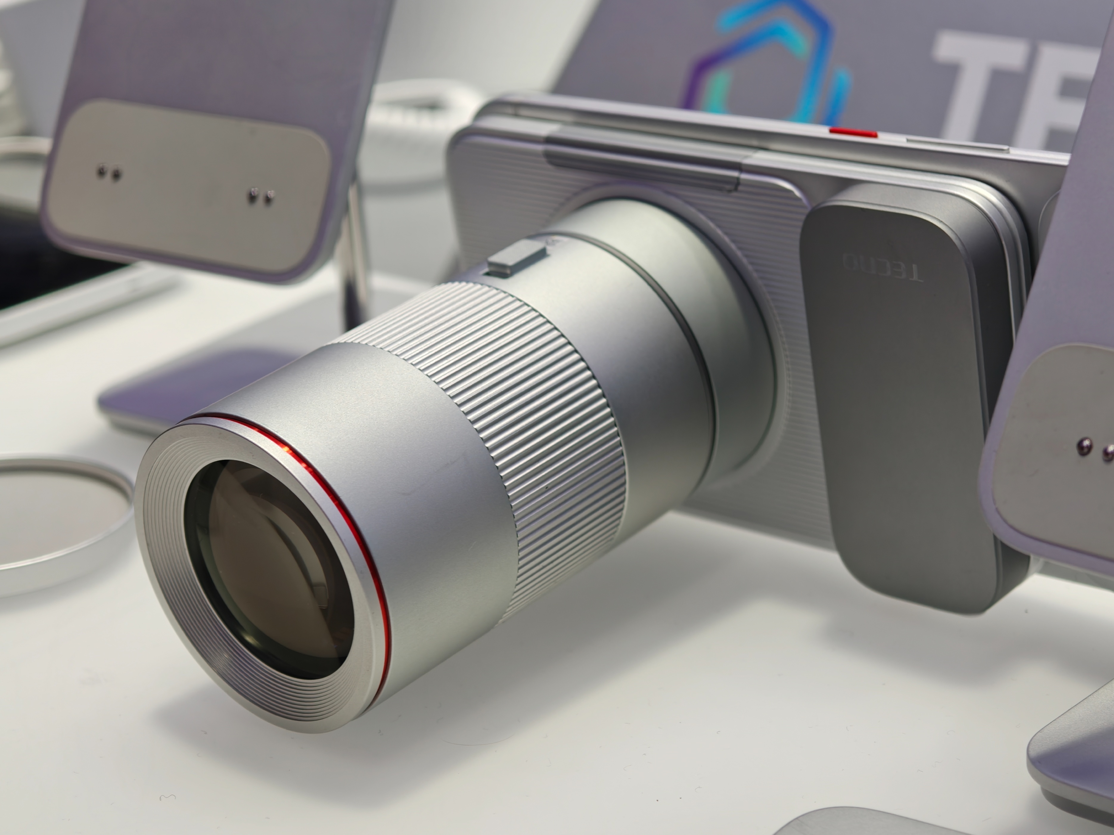 小雷宣布传音这个模块化手机是今天看到最有意思的手机之一,机身本体就是一台完整的手机,厚度和重量比主流手机都低不少,但有意思的是它的背面有不少磁吸点,可以根据用户的需求放置外接镜头、手机支架、磁吸充电宝、化妆镜补光灯、小喇叭等等等等,工作人员介绍一共有 13 种配件,这可比当年的 MOTO-Z 实用性强多了。