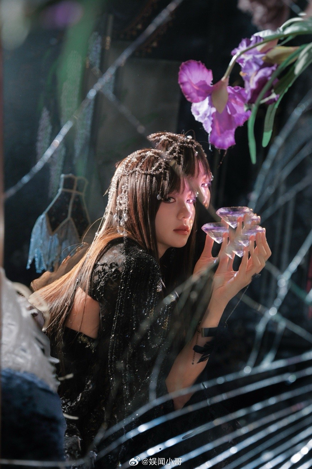 胡意旋小白花爆改黑玫瑰 没看错吧?胡意旋从乖乖小白花变成黑玫瑰,黑蕾丝裙加王冠,暗夜女王范儿,又美又野带点危险,这反差爱了,做梦素材有了!