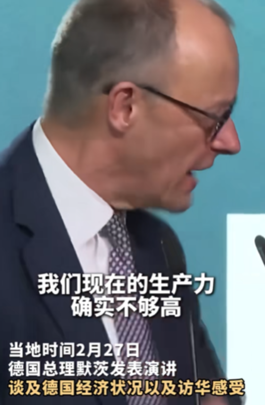 第一,德国生产力不太行了,要继续努力。默茨回国后演讲时提到的原话是,“深刻感受到我们需要更努力”。比如他体验完奔驰跟中国合作的辅助驾驶技术后,感叹这是伟大的技术。还有他在杭州看宇树科技机器人表演,好多外媒都报道,刷新了对中国的认知。