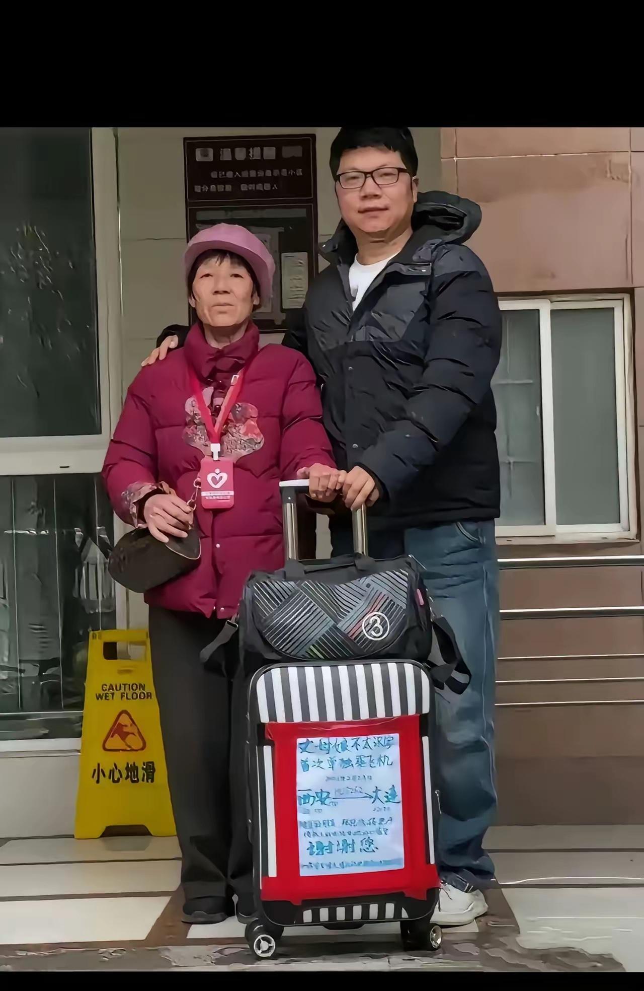 机场里,小伙子给丈母娘送行,老人的行李箱上贴着一张纯手工写的大海报,上面写着:“丈母娘从西安飞大连,第一次单独坐飞机,不太认识字,陌生的朋友,机场这一幕,属实给我看暖了。 小伙子送丈母娘去大连,行李箱上用红胶带死死缠着一张大海报。上面字写得真诚:“老人第一次坐飞机,不识字,陌生的朋友受累搭把手。”连登机口和座位号都标得清清楚楚。 旁边一位大姐当场就应下了,说她跟老人同一班机,下机肯定送到出口。大姐说看着眼熟,去年她去广州找儿子,脖子上也挂过类似的牌子,懂这种滋味。 这年头,有些亲儿子怕是都难做到这么细。 老太太笑得眼睛眯成一条缝,跟人炫耀女婿在家教了半个月怎么系安全带。连安检员看了海报,都主动把老人领去了优先通道。 直到老人进了候机区看不见了,小伙子还在那给大连的姐夫打电话确认接机位置。这一张破纸条,比什么名牌行李箱都贵重。 网友纷纷表示: 一般情况下陌生人都会帮忙的,我坐高铁行李箱举不动,旁边人立即帮忙放上去了,真的感谢陌生人。 给这位小伙点赞太暖心了,大家看到都会帮忙的,除非遇到骗子,相信世上还是好人多。 太暖心了,我给妈妈准备过这样的条子,但女性能够想得这么周到真是难得。