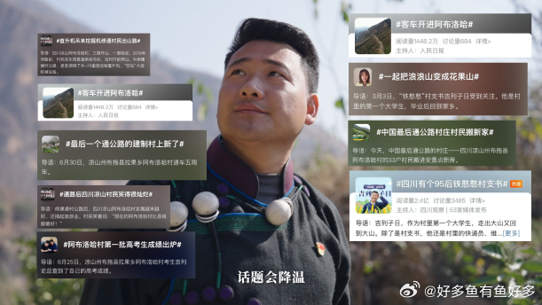 95后代表手搓后援团为村支招 吉列子日太能干了!用朋友圈“搓”出后援团,给阿布洛哈村铺了条“云公路”,让乡亲们的山货能出山,智慧又暖心~👍