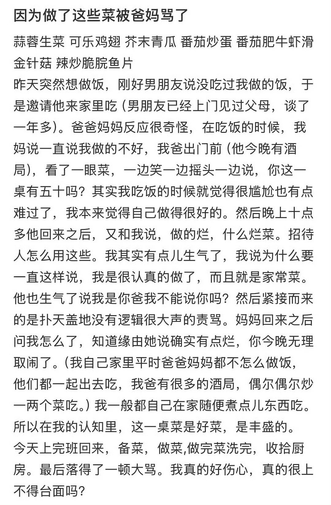 因为做了这些菜被爸妈骂了