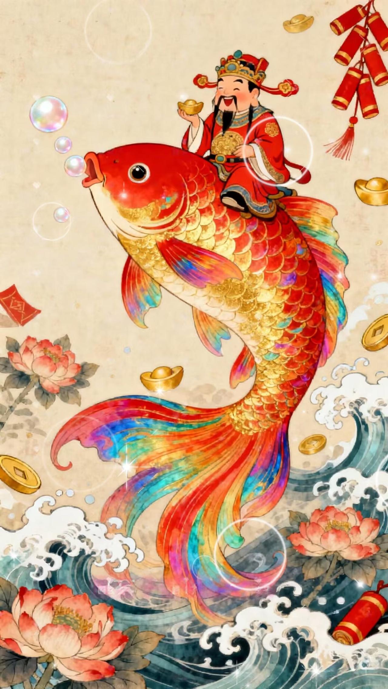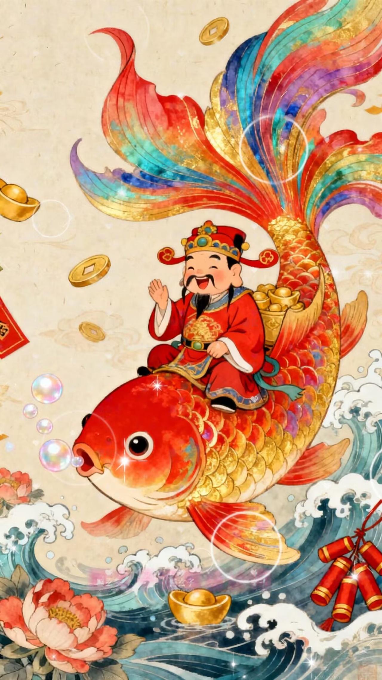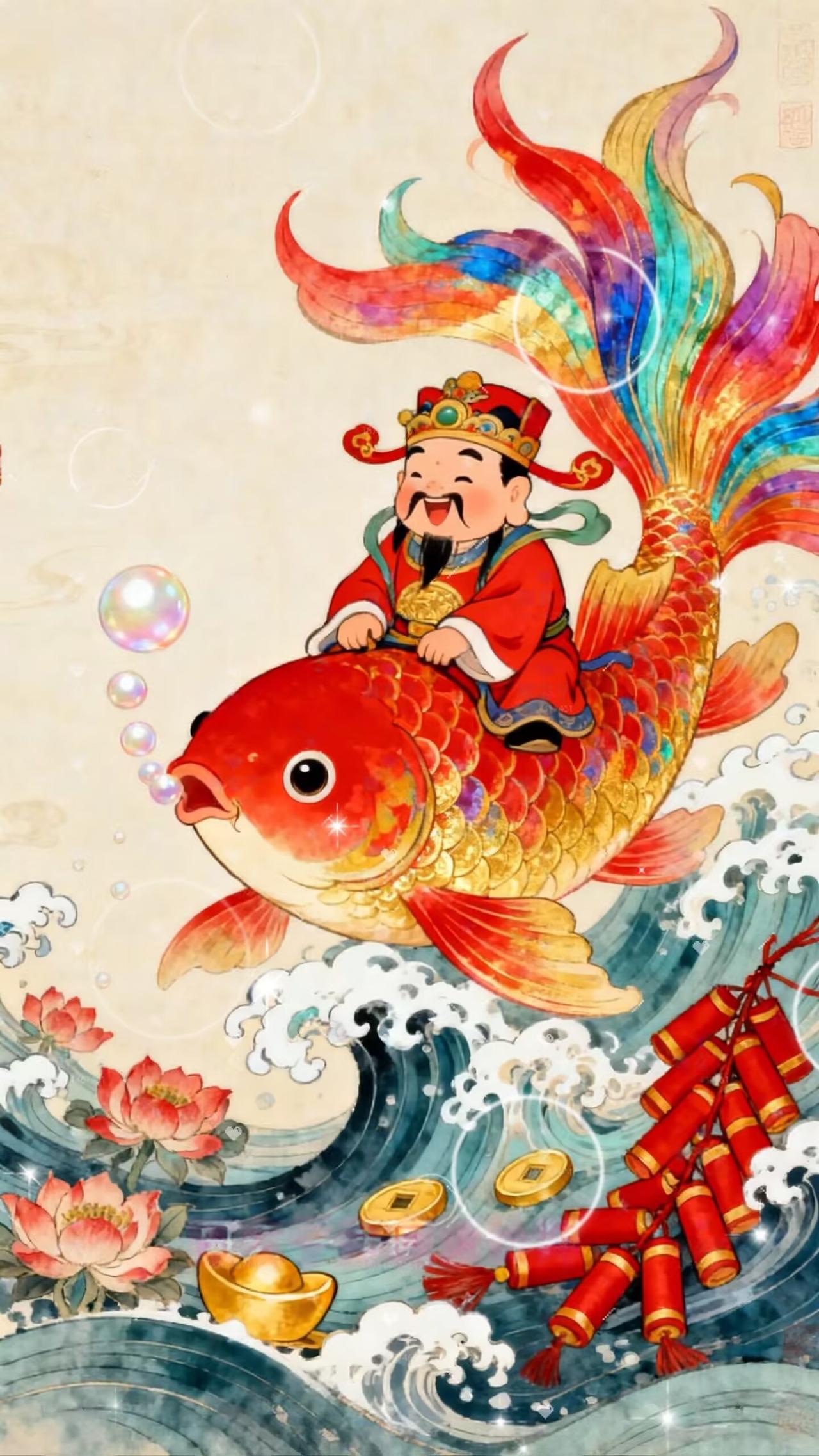 “送年神,迎财神,正月十六福满门…”传统文化绘画