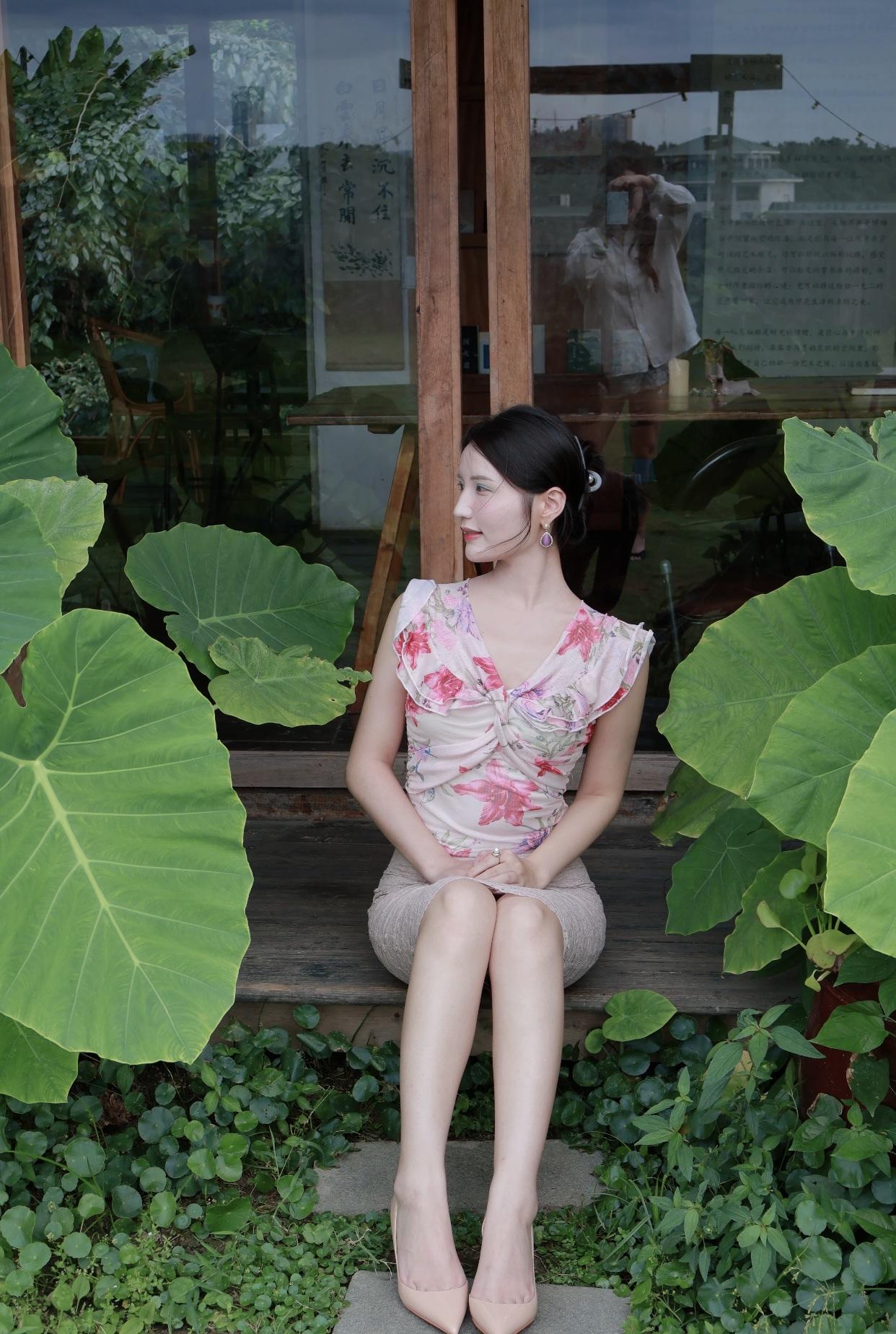 有哪些令人眼前一亮的裙装穿搭美女在店外摆姿势,周围有宣传海报。