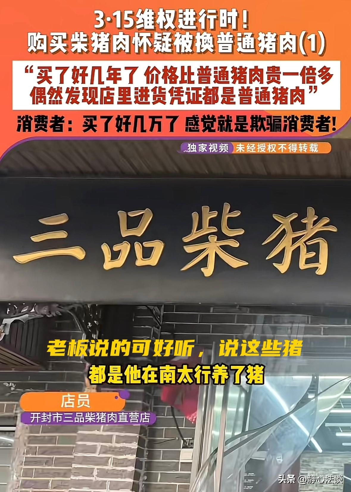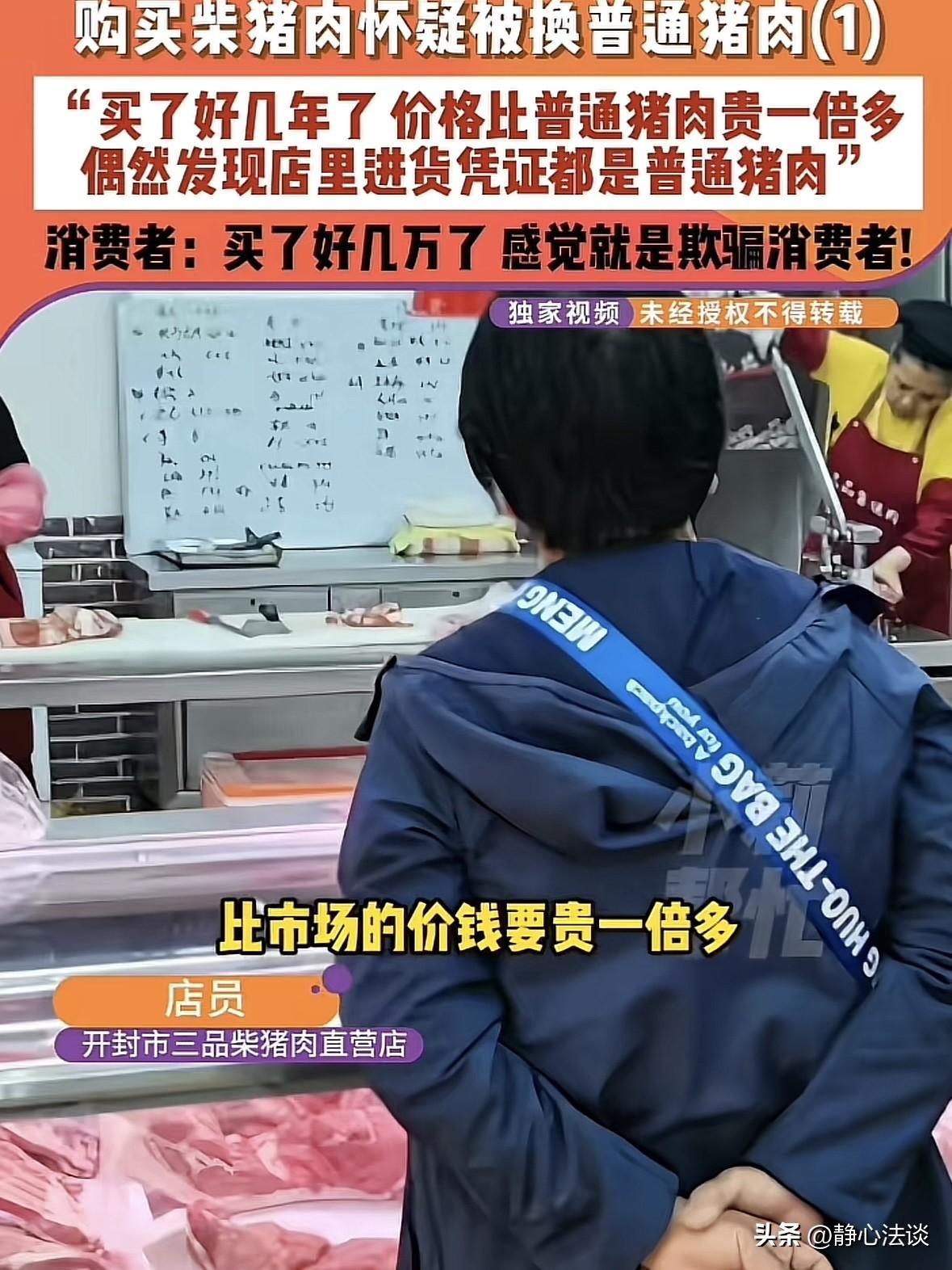 “挂羊头卖狗肉!”河南开封,大姐连续3年花高价买柴猪肉,坚信这些猪都是老板在山上散养的跑山猪,去没想到却意外得知,这些柴猪肉根本不是山上散养的,而是老板在其他公司进的普通猪肉,进价10来块钱一斤的,转手就是30多,大姐越想越气,找到店家讨要说法,没想到店家最后的做法,更让她无法接受! 大姐是三品柴猪肉店的老主顾,从2020年开始,就认准了店里的柴猪肉。 老板嘴甜会说,拍着胸脯保证自家猪肉全是散养的跑山猪,不吃饲料无公害,肉质那叫一个香。 老板还说自己在山上有个农家乐,带着大姐和一众老顾客还特意去参观过。 可大姐和一众人到了以后,并没看到猪的影子,可大家也没多想,只觉得散养的猪本就爱溜达。 一来二去,大姐成了铁杆粉丝,三年下来前前后后花了足足三四万,身边不少朋友也被她带着成了店里会员。 直到大姐有一次在山上农家乐闲逛,竟撞见有送肉的车往店里送东西。 她很是纳闷,老板不是说猪肉都是自家山上养的吗?既然有现成的散养猪,为啥还要从外面收肉? 巧的是,身边的朋友都说最近买的肉吃着没了以前的香,跟菜市场的普通猪肉没啥两样。 大姐再也坐不住了,一番翻找后,她扒出了店里的进货凭证,眼前的内容让她瞬间火冒三丈! 原来所谓的柴猪肉,根本不是山上散养的,全是从其他公司进的普通猪肉。 他还专挑五花、带脂腿肉这些部位,进价才10来块一斤,老板转手就翻三倍卖到30多。 大姐又气又委屈,感觉自己的信任全都喂了狗,心里说不出的堵。 她拿着进货单找店家讨说法,店员被问得哑口无言,只能硬着头皮拿出进货凭证,默认了这件事。 可让她想不到的是,店家被戳穿后,店家直接关了线下门店,老板卷款跑了。 连会员卡里没花完的钱也一概不退,统计下来所有人卡内余额加起来还有三四万。 更离谱的是,店家虽然线下跑了,但线上却没闲着,还在各大平台继续卖所谓的“南太行柴猪肉”。 后来记者以消费者身份联系到店家负责人,对方还在嘴硬,坚称肉是南太行山上的粮食柴猪肉。 可当问他开封的梅花肉怎么成了柴猪肉以及为何不整头猪分割”时,负责人却支支吾吾,反复说之前的肯定是柴猪肉,但又拿不出什么证据。 后来还有人爆料,这家店的肉不仅是普通猪肉,连防疫检疫章都没有。 好好的一家猪肉店,愣是把生意做黄了,靠着忽悠老顾客薅羊毛,吃相实在太难看。 《消费者权益保护法》第55条:经营者提供商品或者服务有欺诈行为的,应当按照消费者的要求增加赔偿其受到的损失,增加赔偿的金额为消费者购买商品的价款或者接受服务的费用的三倍,不足五百元的,为五百元。 店家把普通肉当柴猪肉卖,故意虚构产地、品质,属于消费欺诈,大姐有权要求退一赔三。 《消费者权益保护法》第53条:经营者预收费用后关门跑路,必须退还剩余预付款;恶意逃避退款构成欺诈,同样适用三倍赔偿,涉嫌犯罪可移送公安追究刑责。 关店不退卡钱,是违约加欺诈,消费者可起诉退款外加三倍赔偿,金额较大还能报案追究诈骗责任。 这事一出,不少网友直呼离谱:这年头连猪肉都有李鬼了? 老板的套路也太深,用农家乐当幌子,用散养做噱头,一斤肉赚二十多,他也是真敢卖! 更让人愤怒的是,老板被揭穿后不是道歉、退款、承担责任。 而是直接跑路、关店、线上继续骗人,这种行为已经不是简单的生意不诚信。 其实说到底,做生意拼的从来不是嘴皮子,而是良心。 赚钱可以,但不能赚黑心钱,可以不做百年老店,但不能做一锤子骗子买卖。 消费者的信任很贵,一旦碎了,就再也拼不回来了。 对此,你怎么看这件事! @静心法谈 学法辨是非,慬法不吃亏。