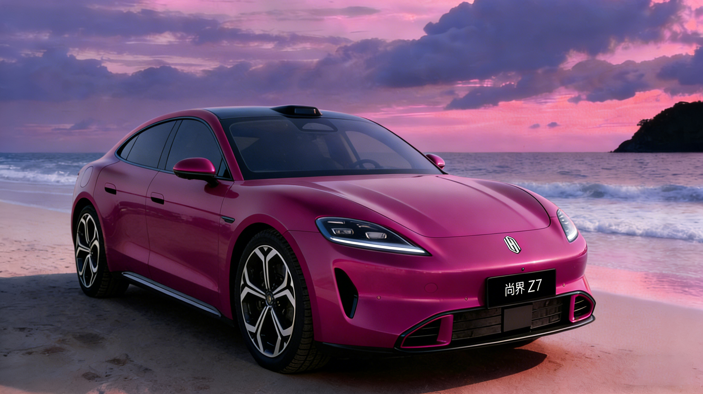 又忍不住让AI做了几张图,尚界Z7的颜色也太好看了吧,而且还是轿跑、猎装一步到位,喜欢哪个选哪个。隔空合影一下,等开放试驾后咱们去实拍感受感受~尚界Z7双箭齐发尚界Z7电光紫粉