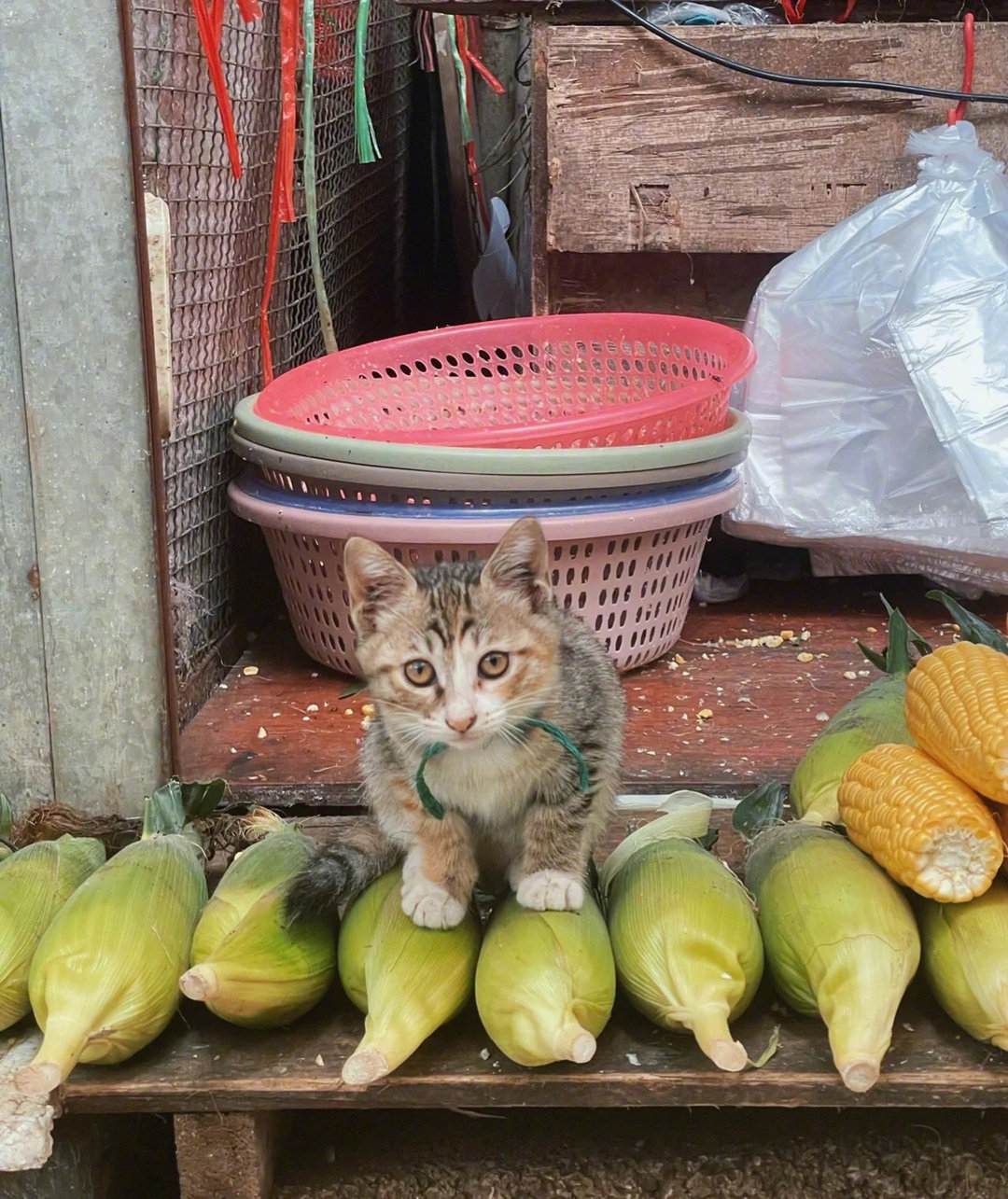 一位大姐在路过菜市场一处屠宰场的时候拍摄下的感人一幕!原本面前的三轮车内装满流浪