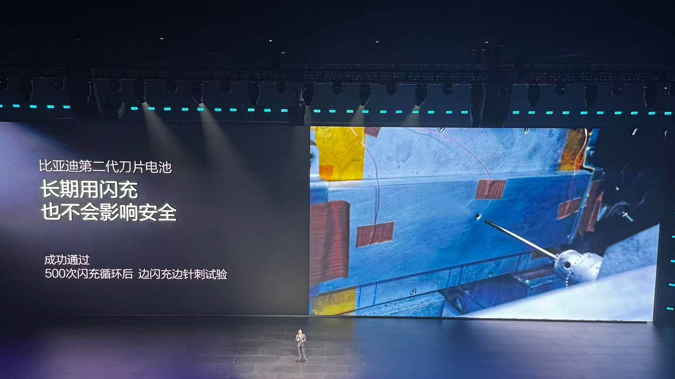 相比第一代刀片电池,第二代刀片电池在安全上也进行了升级,循环500次后,通过了难度系数更大的边充电边针刺实验。