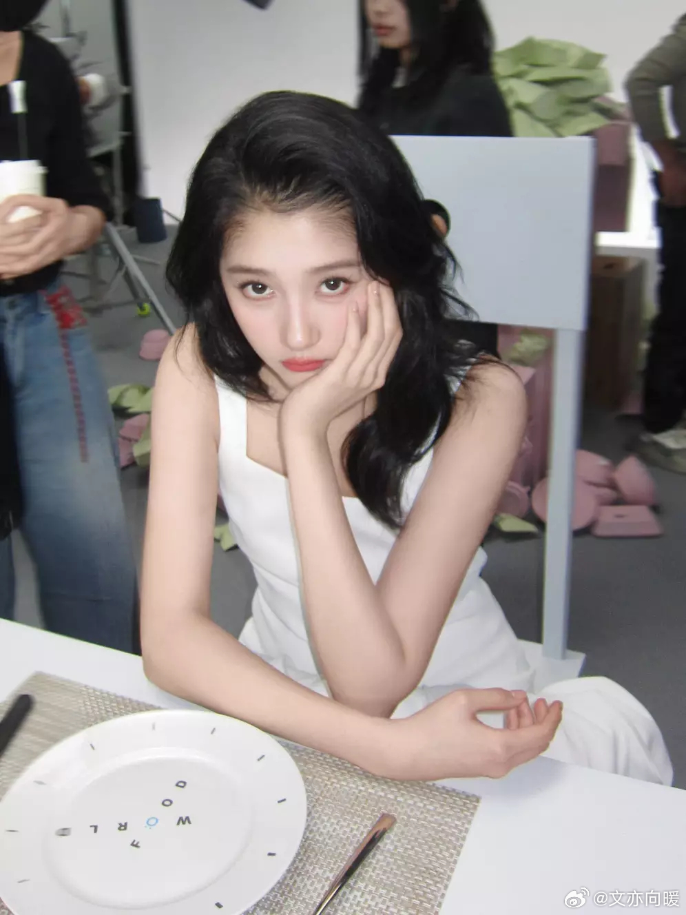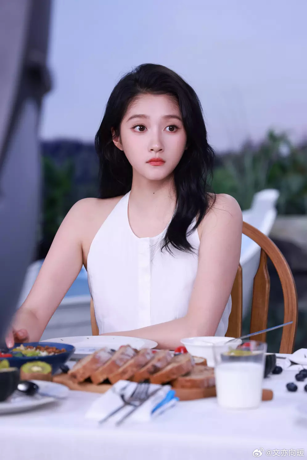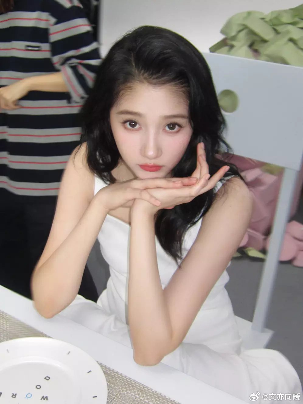 文亦娱乐关晓彤身穿白色工字连衣裙,清纯可人。
