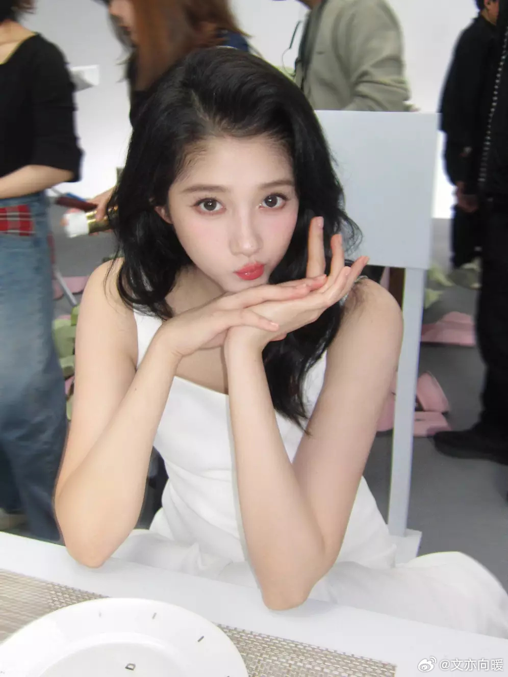 文亦娱乐赵露思穿白色蕾丝裙点缀精致耳饰 长发披肩尽显精致温婉