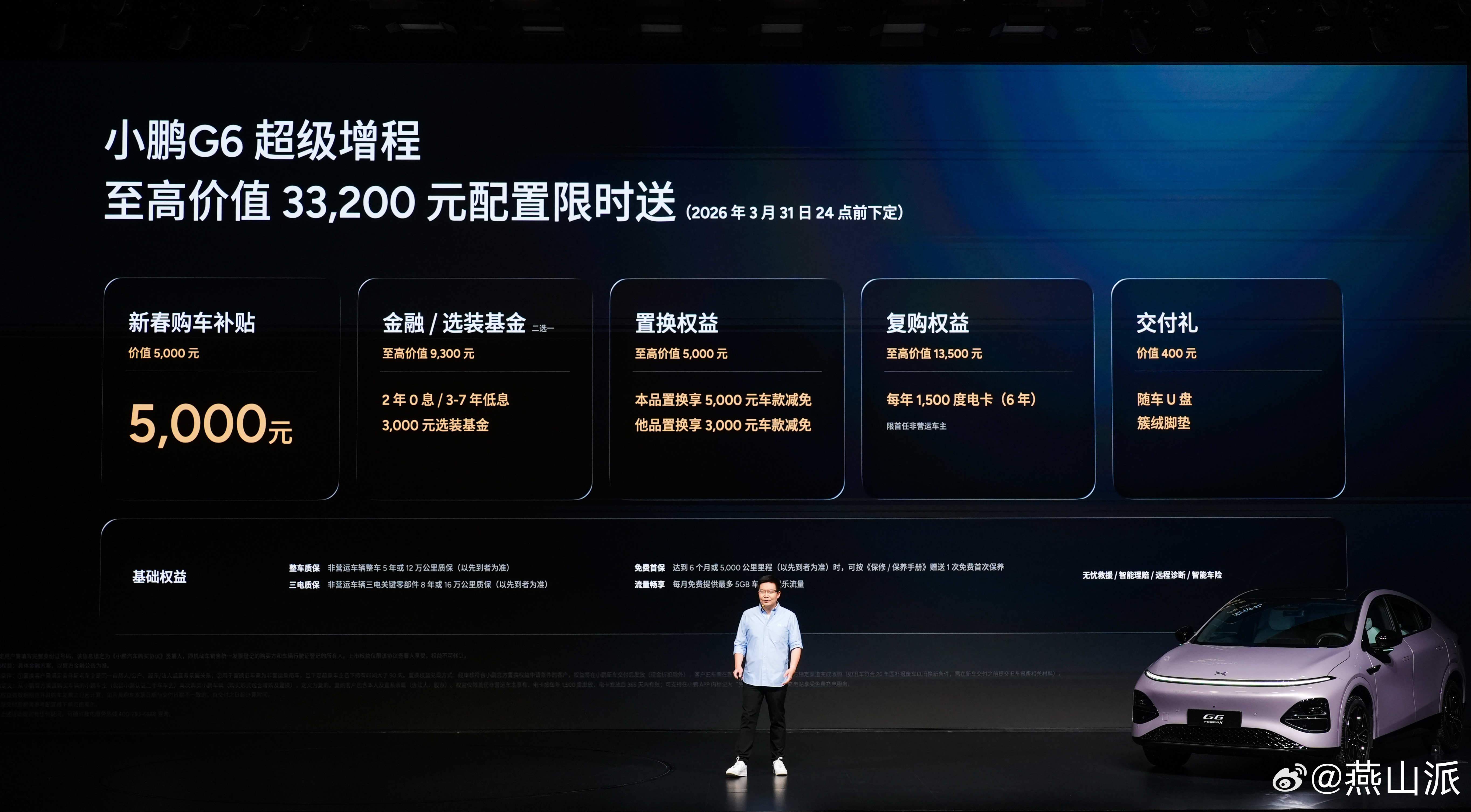 购车权益如下:3月31日24点前下定,可享最高价值33200元限时权益礼包:包括5000元新春购车补贴;至高价值9300元金融/选装基金(二选一);至高价值5000元置换权益;至高价值13500元复购权益;价值400元交付礼