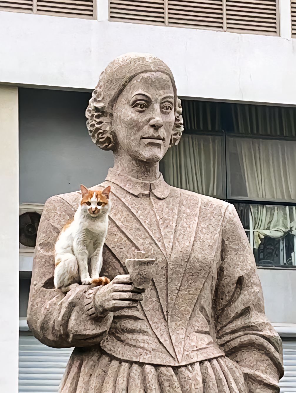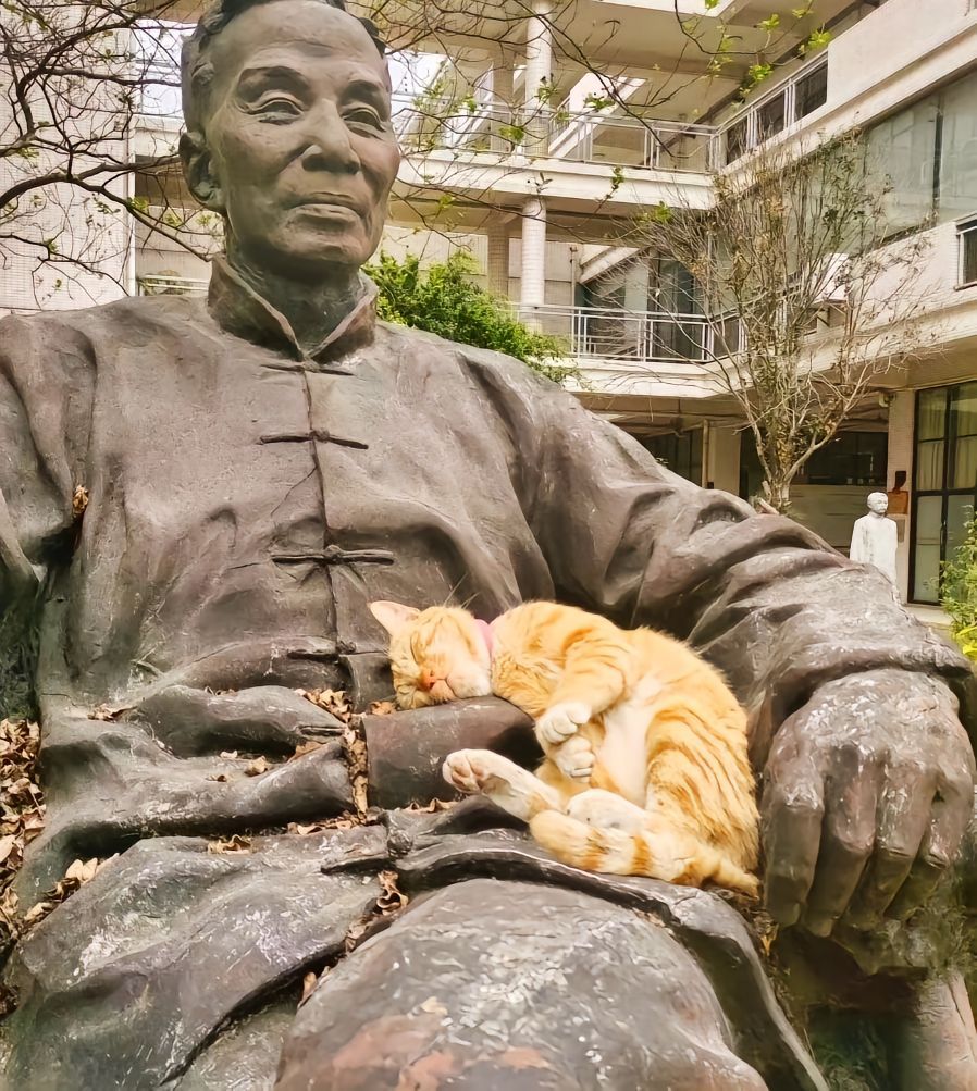 有了猫,连雕像好像都有了生命