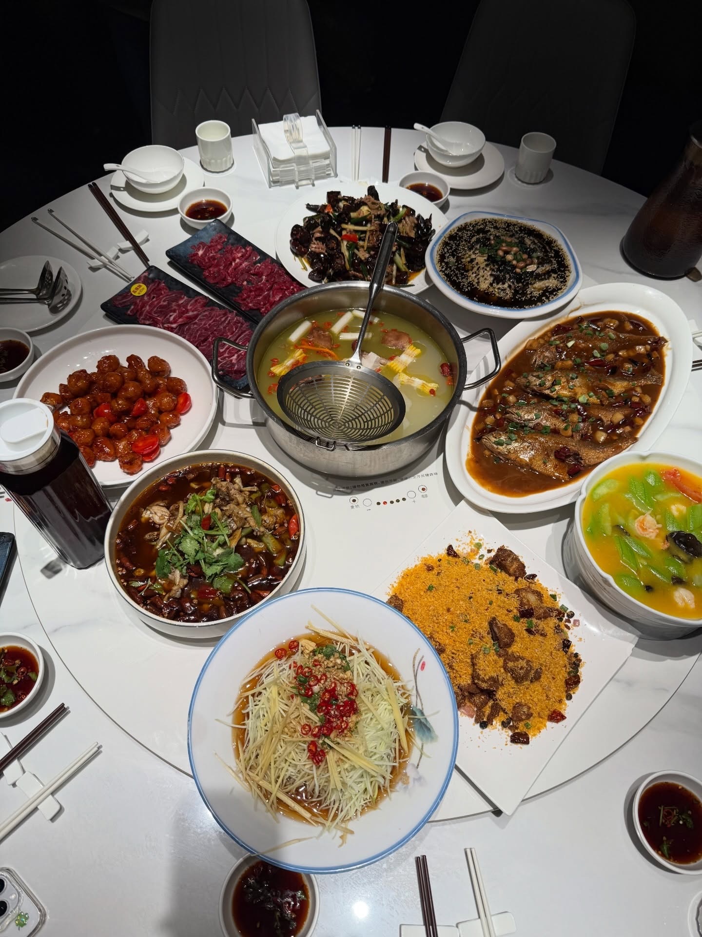 46岁秦岚在宁波一家餐馆吃饭,和老板一起拍摄合影。她看起来好年轻,身材太好了!