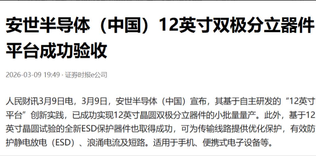 荷兰安世现在后悔,是不是来不及了? 3月9日,安世中国工厂宣布,已经实现了12英寸晶圆功率半导体的小规模量产,成功验收。这就意味着,安世中国工厂在自主研发和摆脱对荷兰总部的依赖上,迈出了重要且关键性的一步。 谁也没想到,一场始于2025年的控制权博弈,最终会以这样的方式出现反转。荷兰安世当初挥刀切断对中国工厂的供应时,大概从未想过,自己亲手把最核心的产能和未来,推向了对立面。如今安世中国的12英寸晶圆成功量产,最坐不住的,无疑是远在荷兰奈梅亨的安世总部。 要搞懂荷兰安世为什么会后悔,得先回头看看它当初的操作有多“自信”。2025年9月,荷兰政府以所谓的“治理问题”和“国家安全”为由,强行冻结安世半导体的全球资产,接管了公司控制权,还免去了闻泰科技创始人张学政的安世CEO一职。 紧接着,荷兰总部毫无征兆地暂停向中国工厂供应晶圆,试图用这种方式卡住安世中国的脖子,逼其妥协。 荷兰总部的算盘打得很精:它认为自己掌握着核心设计技术,而安世中国只是个负责封测和低端生产的“加工厂”,离开了总部的晶圆供应和技术支持,中国工厂迟早会陷入停滞。 毕竟在当时,安世中国的前端晶圆生产,确实有一部分依赖于总部协调的供应链,这也成了荷兰方面最大的底气。 可荷兰人忽略了两个关键问题:一是安世中国早已不是当年那个只能依赖总部的“配角”,二是中国市场和供应链的韧性,远比他们想象的更强。 被切断供应后,安世中国没有坐以待毙,反而加速了自主研发和国产替代的步伐,一边紧急验证国内晶圆供应商,一边全力推进12英寸晶圆的自主量产,只用了不到半年时间,就完成了荷兰总部至今都没能实现的突破。 可能有人会问,12英寸晶圆量产,真的有那么重要吗?说通俗点,功率半导体是新能源汽车、储能、工业控制的“心脏”,而12英寸晶圆比传统的8英寸晶圆,面积更大、产能更高,单位芯片成本能降低30%到50%,是行业升级的必然方向。 更关键的是,荷兰安世自己至今都没有12英寸晶圆的生产能力,而安世中国的突破,相当于直接掌握了行业的主动权。 更让荷兰安世头疼的是,安世中国手里还握着一张“王牌”——产能。根据公开数据,安世中国的东莞工厂,承担了安世全球95%的后端封测任务,年产量超过500亿件,占据全球70%的封测份额。 也就是说,荷兰总部即便掌握着设计技术,没有中国工厂的封测产能,也很难把设计转化为成品,更别说交付全球客户。 当初荷兰总部切断供应,本想逼安世中国就范,结果反而倒逼它彻底摆脱了依赖。现在的安世中国,不仅实现了12英寸晶圆的自主量产,还与国内多家晶圆企业达成合作,国产化率预计到2026年底能达到90%以上。 更重要的是,它的订单结构已经发生了根本性变化,国内订单占比从2025年的48%提升到了60%以上,比亚迪、吉利等车企的订单同比增长30%以上,就算完全脱离荷兰总部,也能稳步发展。 反观荷兰安世,现在的处境可以说是进退两难。失去安世中国的产能支持后,它的全球交付能力大幅下降,不少欧洲客户因为担心供货不稳定,纷纷转向安世中国,甚至像大众、宝马这样的车企,主动采购晶圆运往中国进行封测,相当于用实际行动认可了中国产能的核心地位。 荷兰总部虽然计划在马来西亚新建工厂,但技术适配至少需要一年以上,短期根本无法撼动安世中国的优势。 其实荷兰安世的后悔,本质上是误判了形势,也低估了中国企业的韧性。它以为凭借技术和控制权,就能牢牢掌控全局,却忘了供应链的核心是互补共赢,而不是单方面的压制。 当初它试图用切断供应的方式拿捏安世中国,殊不知这反而成了倒逼安世中国自主突破的催化剂,最终把自己推向了被动的境地。 现在再问荷兰安世后悔是不是来不及了,答案其实已经很明显。安世中国的12英寸晶圆量产,不是一个简单的技术突破,而是彻底打破了荷兰总部的垄断,形成了自主可控的供应链。 更关键的是,中国作为全球最大的功率半导体市场,安世中国已经牢牢占据了国内市场的主动权,订单源源不断,产能持续扩张,而荷兰安世却在失去中国产能和市场后,逐渐沦为空壳。 或许荷兰安世现在已经意识到了自己的错误,想要重新修复与安世中国的关系,但为时已晚。安世中国已经走出了依赖荷兰总部的阴影,朝着“国内产能占80%、中国市场占全球销售额50%”的目标稳步前进,未来还会加大高端产品的投入,进一步扩大市场份额。 这场博弈,说到底,是荷兰安世亲手放弃了自己最核心的竞争力。它以为掌控了技术,就掌控了一切,却忘了产能和市场才是半导体产业的根基。现在安世中国的自主突破,不仅是自身的胜利,更印证了一个道理:在核心技术上,依赖别人永远没有出路,只有自主创新,才能掌握自己的命运。 而荷兰安世的后悔,或许会成为半导体行业里,一个因傲慢和误判而错失未来的典型案例。