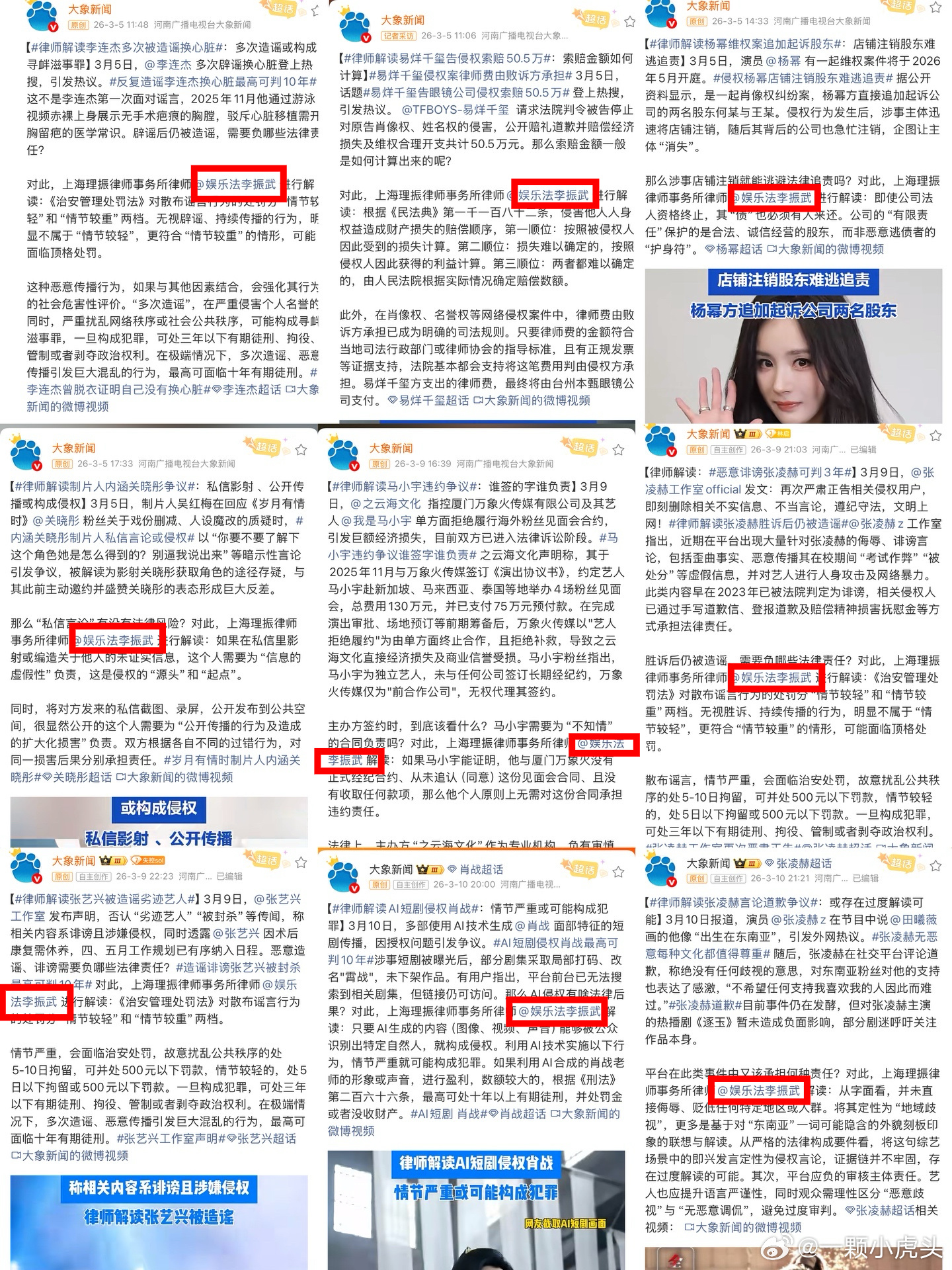 我说最近怎么老有一些蹭明星事件热度的律师解读热搜,仔细一看原来都是同一个号搞得。律师解读张凌赫道歉争议