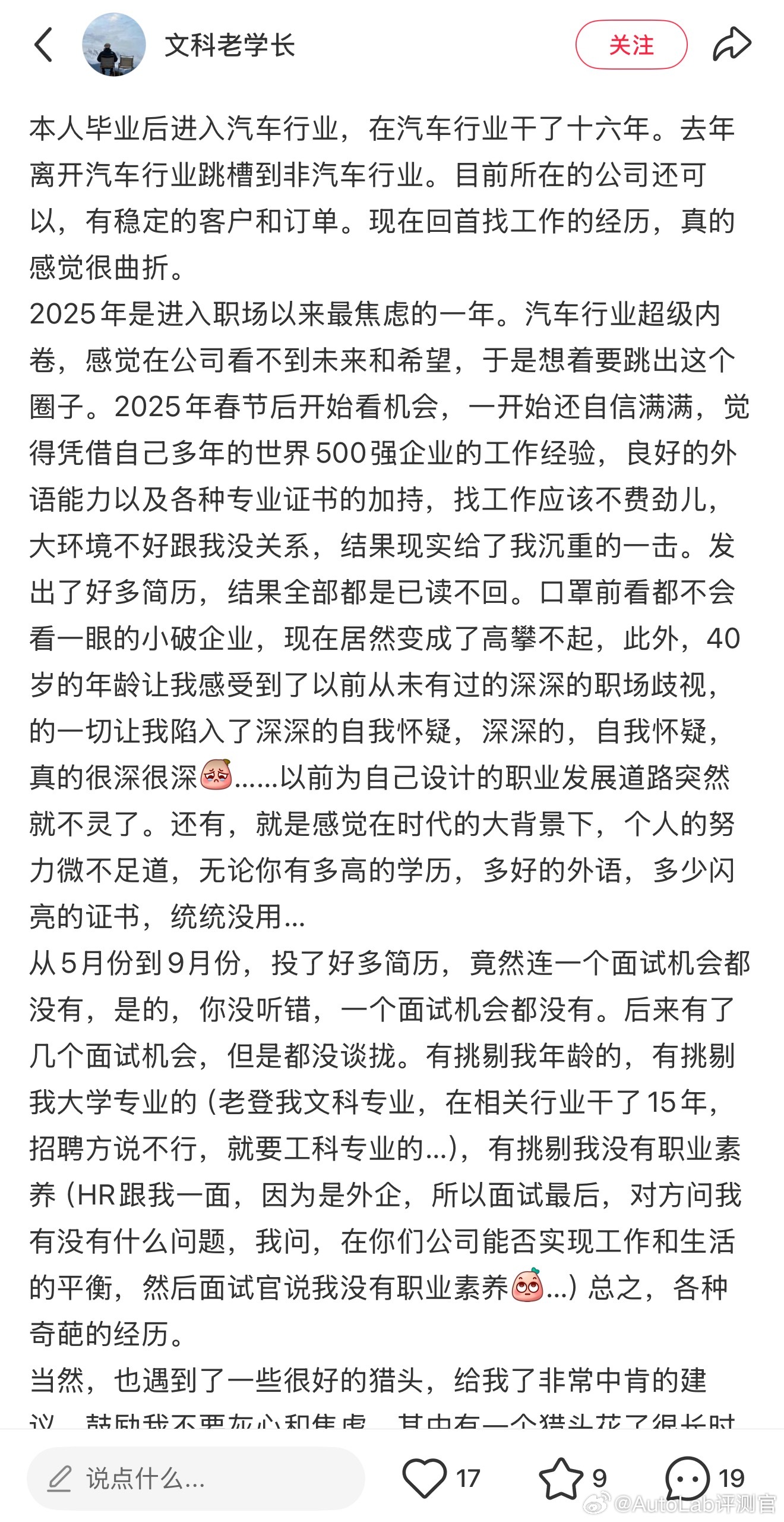 一个40岁,在汽车行业干了16年的"中登"的感悟