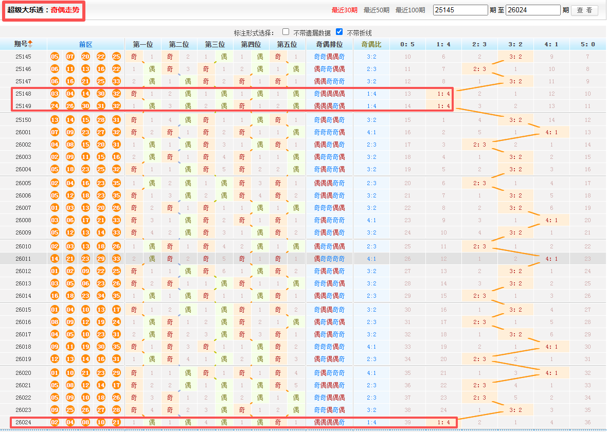 大乐透26025期一等奖选号思路。上期前区开出2.4.8.10.24。区间比为4;1;0,大小比为1:4,奇偶比为1:4。衔接断二区之后断三区。