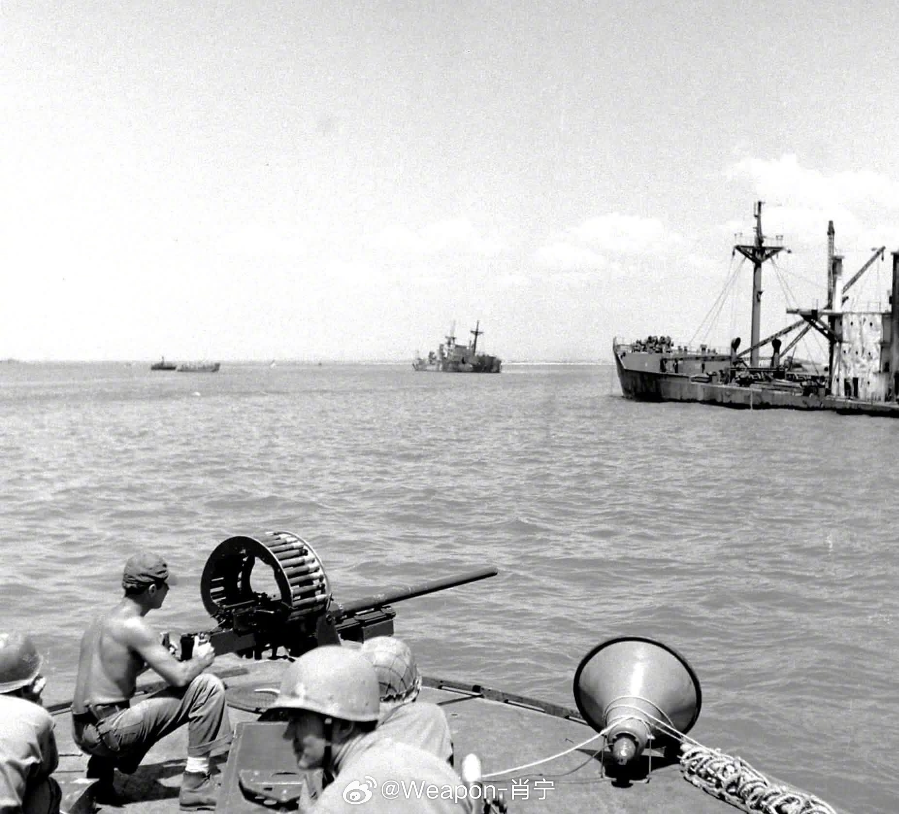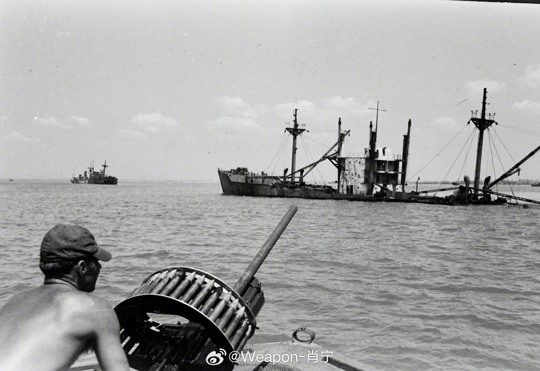 烽火问鼎计划照片中的历史 1945年3月,一些日军顽固分子躲藏在马尼拉湾中众多破损及半沉的船只中。美军第129步兵团的官兵搭乘鱼雷快艇和登陆艇,抵近登上沉船,用火焰喷射器清剿隐藏的日军。
