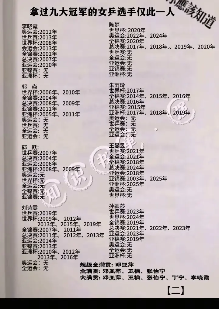 拿过九大冠军的女乒选手仅此一人。
