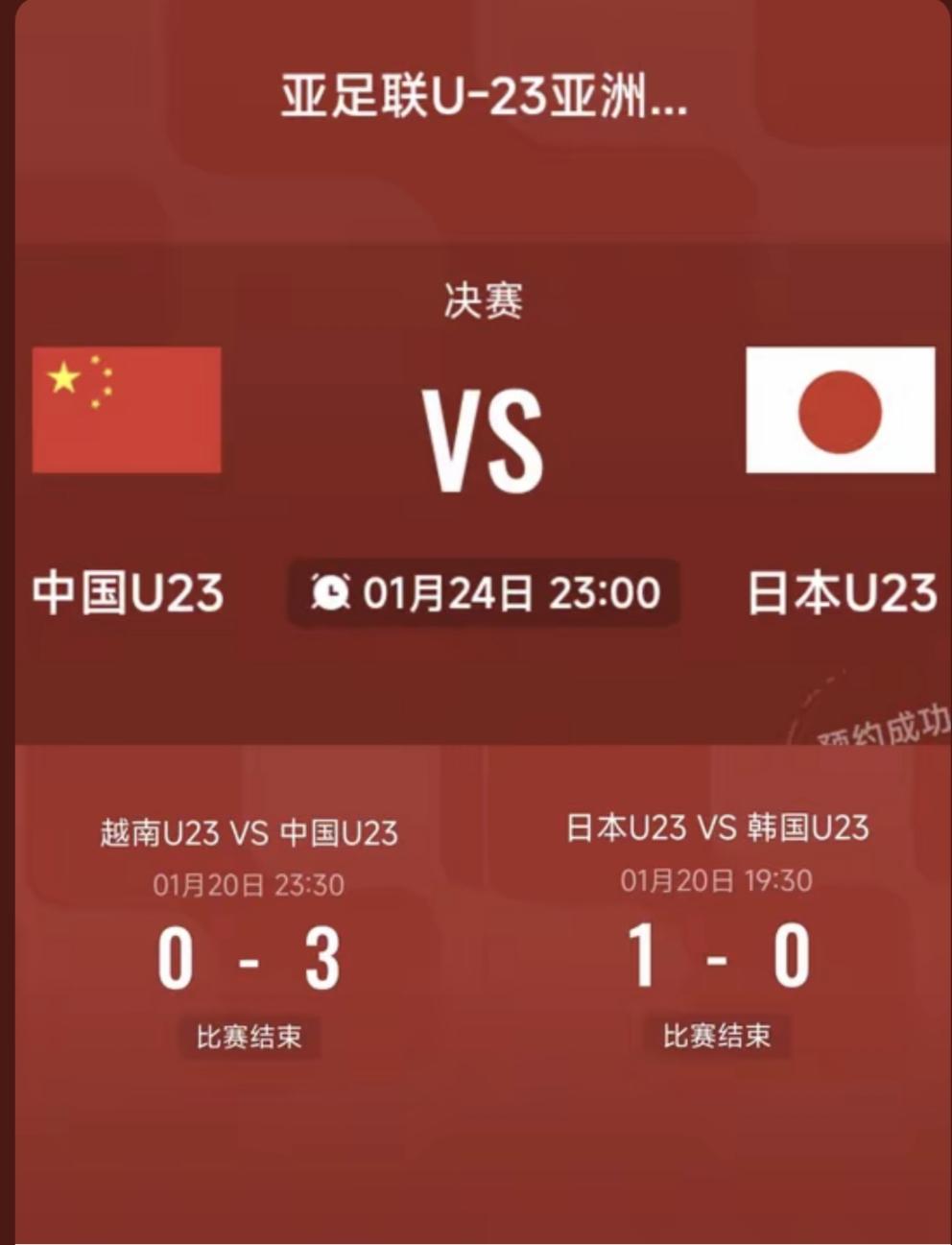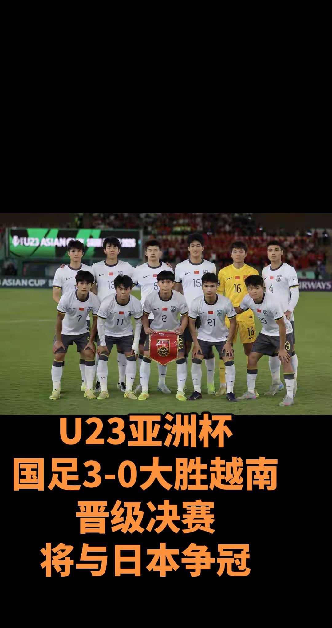 U23亚洲杯 国足3-0大胜越南 晋级决赛 将与日本争冠