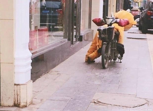 这一幕太搞笑了小伙子带女友乘坐一辆摩的因为生怕女友的胸口蹭到摩的师傅后背