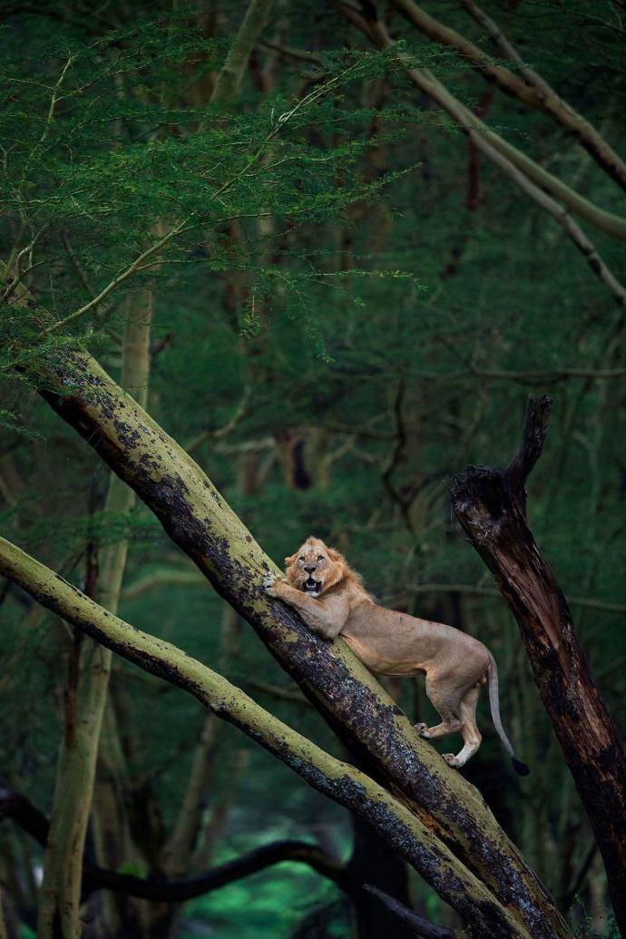 爬树的大猫,看到狮子简直了