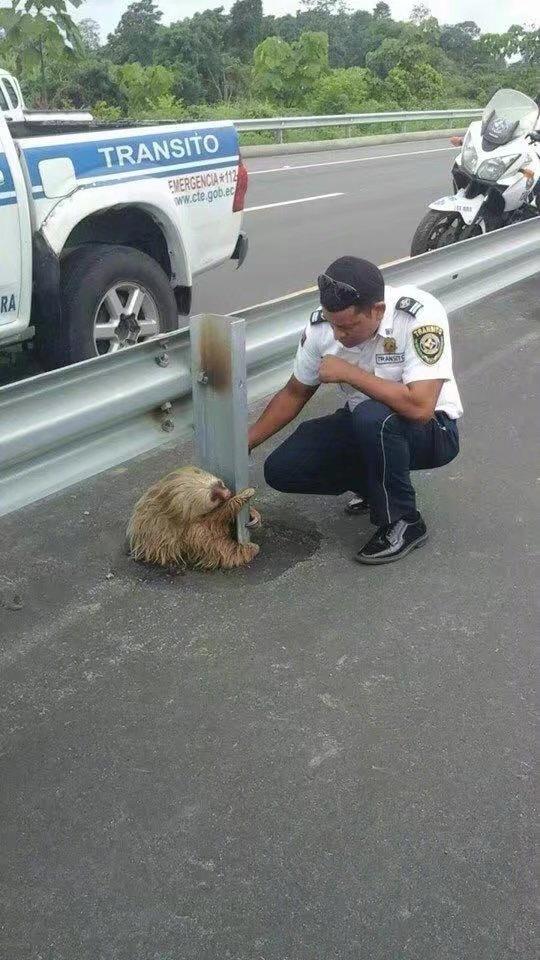 一只被困在路中间的树懒:“每辆车开的都像光速一样,本宝宝实在过不去啊。。”