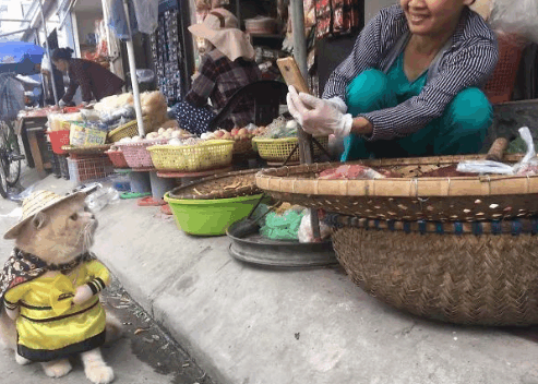 一只猫咪竟因街头卖鱼意外走红?