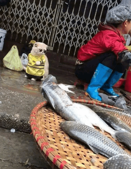 一只猫咪竟因街头卖鱼意外走红?!巡视菜市场当老大,简直萌翻了