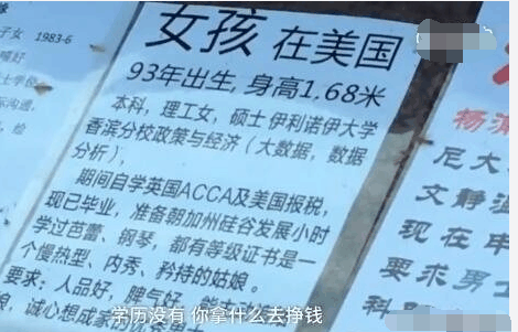 【大爷为93年女儿相亲,声称月薪1万是讨饭】上海人民公园相亲角一位大爷,他说,女儿是93年的,现在在美国。征婚条件要看学历和人品,有学历就有钱,月薪五千、一万的是讨饭。网友:原来我是丐帮的…