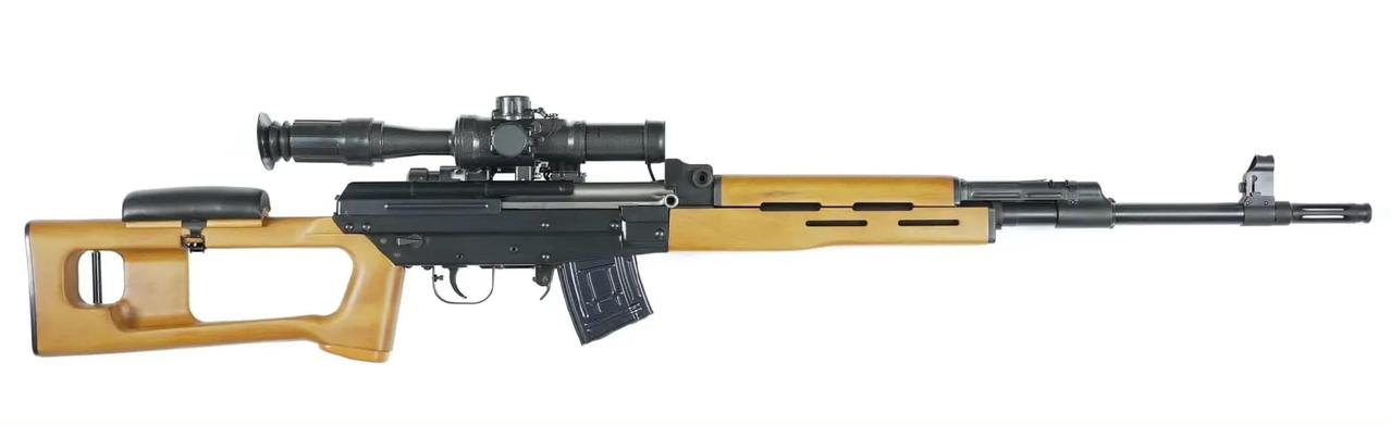【81式“精确射手步枪”在加拿大上市】 图中这支枪是北方工业公司出口加拿大的新产品——在81式步枪基础上加长枪管,改用运动型枪托,加装瞄准镜演变而来的“精确射手步枪”。这枪的外观和俄罗斯SVD以及罗马尼亚SPL狙击步枪很相似,但核心机构是81式的活塞短行程自动机,发射的还是7.62x39mm中间威力步枪弹,根据加拿大法律规定,弹容量限制在5发。