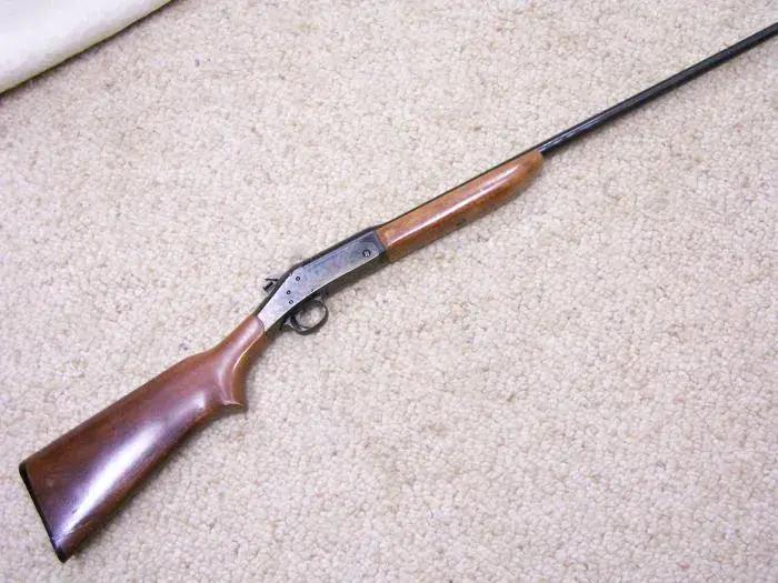 画面中这支结构简单,外形纤细的中折猎枪是美国哈灵顿-理查德森(H&R)公司生产的Model 58单管猎枪,这支是410口径,即.41英寸,是常见霰弹里口径最小的,主要用于猎鸟和小型兽类。 哈灵顿-理查德森公司是美国老牌民用枪械制造公司,主要生产霰弹枪、步枪和转轮手枪,产品价格比较亲民。