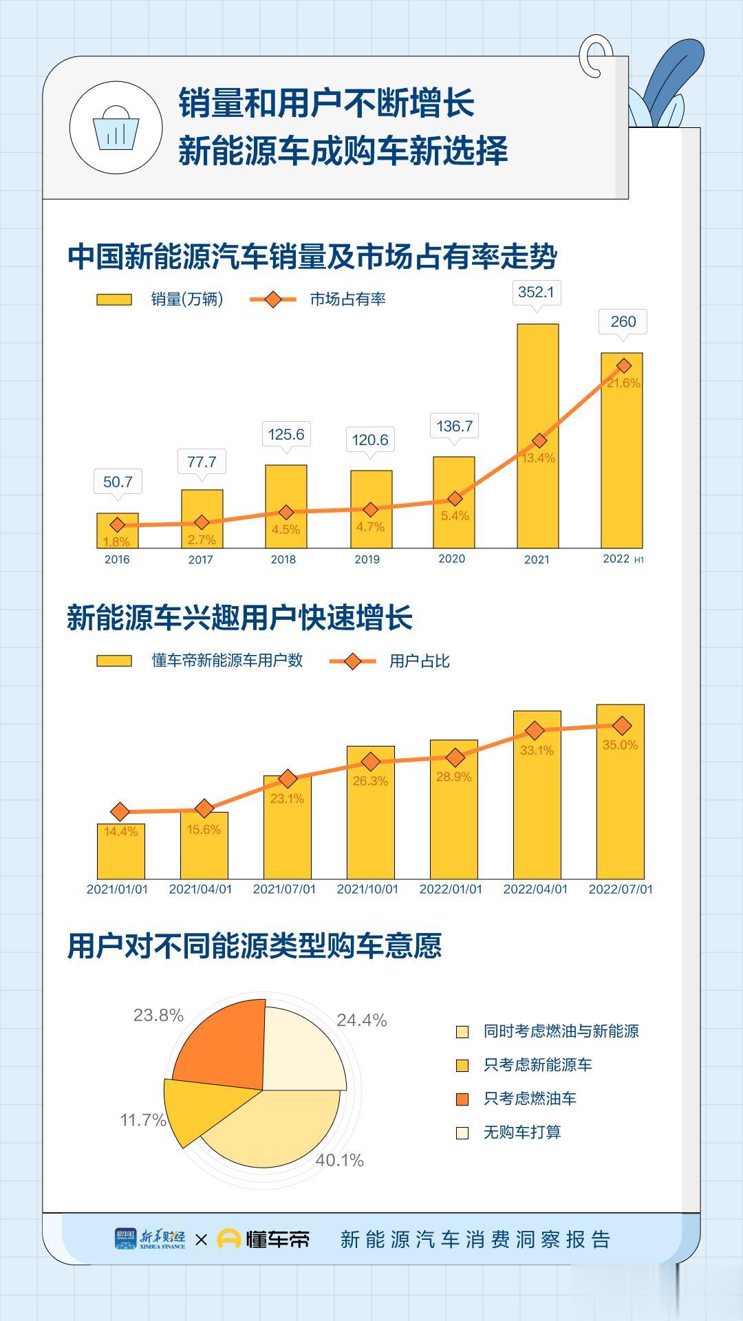 没想到吧!从懂车帝联合新华财经发布《新能源汽车消费洞察报告》来看,女性购买新能源车意愿比男性更高。根据调查来看,女性对新能源车的偏好高于男性,20.7%的女性表示会优先选择新能源车。 之前我们的潜意识中,会觉得男性更容易接受新能源汽车,但从实际的《新能源汽车消费洞察报告》来看,女性朋友对新能源汽车的接受程度会更高,我想这也是由多方面因素导致的。 之前传统燃油车时代,造车更多是根据车企自己的策略来造的,如大众汽车,丰田汽车等。而进入新能源时代,更多的新能源车企会倾听用户的声音,会根据用户的喜好来造车,这更容易打动女性消费者。 本身相较于男性购车时关注品牌和操控性,女性则更注重开车便捷性以及短距离用车场景,而如今的车企在外观、内饰和功能设计上也越来越考虑女性需求,这也导致女性朋友对新能源的接受程度比男性朋友更高。 从懂车帝联合新华财经发布《新能源汽车消费洞察报告》来看,目前插混车也越来越受到了消费者的关注,毕竟插混车可油可电、上绿牌免购置税的特点确实让其拥有很大的优势