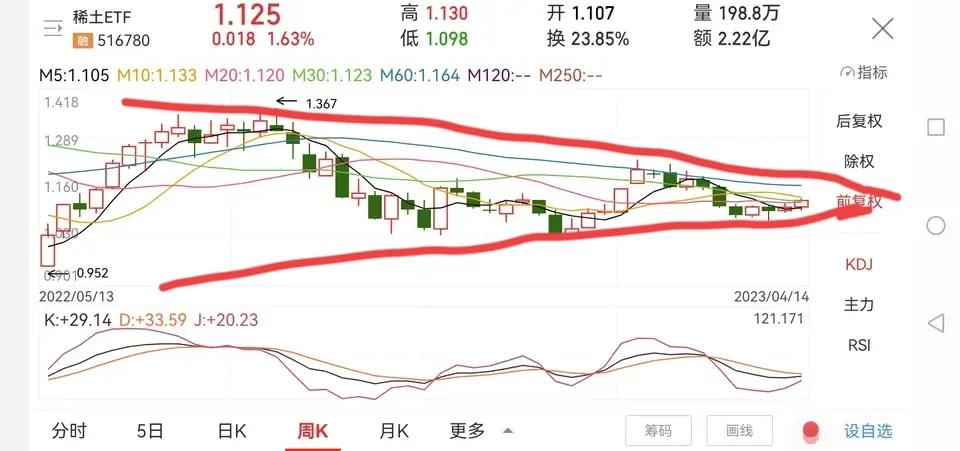 房地产和稀土板块这样看! 在政策暖风频吹的情况下,今年的房地产板块迎来了触底回升,目前正在图中的箱体当中(如图),已上涨到一个平台的压力点位置,能否有效突破打开新的空间还需要观察。从周线级别来看,就是典型的箱体震荡(如图),想要迎来一波牛市还有很长时间要走,短期布林带中轨开始拉升开始往上拐头,可以继续持有观望一下。 稀土板块相对地产板块来说走势好看些,低点重心在提高(如图),且周五放量拉升,显示有抄底资金进来。从周线级别来看,kdj有金叉趋势,短线快到了周线高点联系与低点连线的技术性拐角出,重点看能否突破。